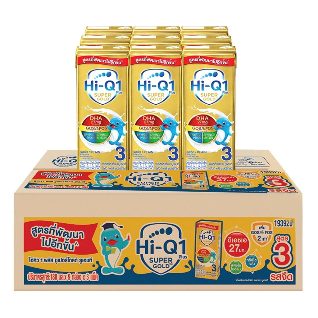 ขายยกลัง! ไฮคิว1,3 พลัส ยูเอชที ซูเปอร์โกลด์ พรีไบโอโพรเทค นมกล่อง uht รสจืด ขนาด180มล(27กล่อง)