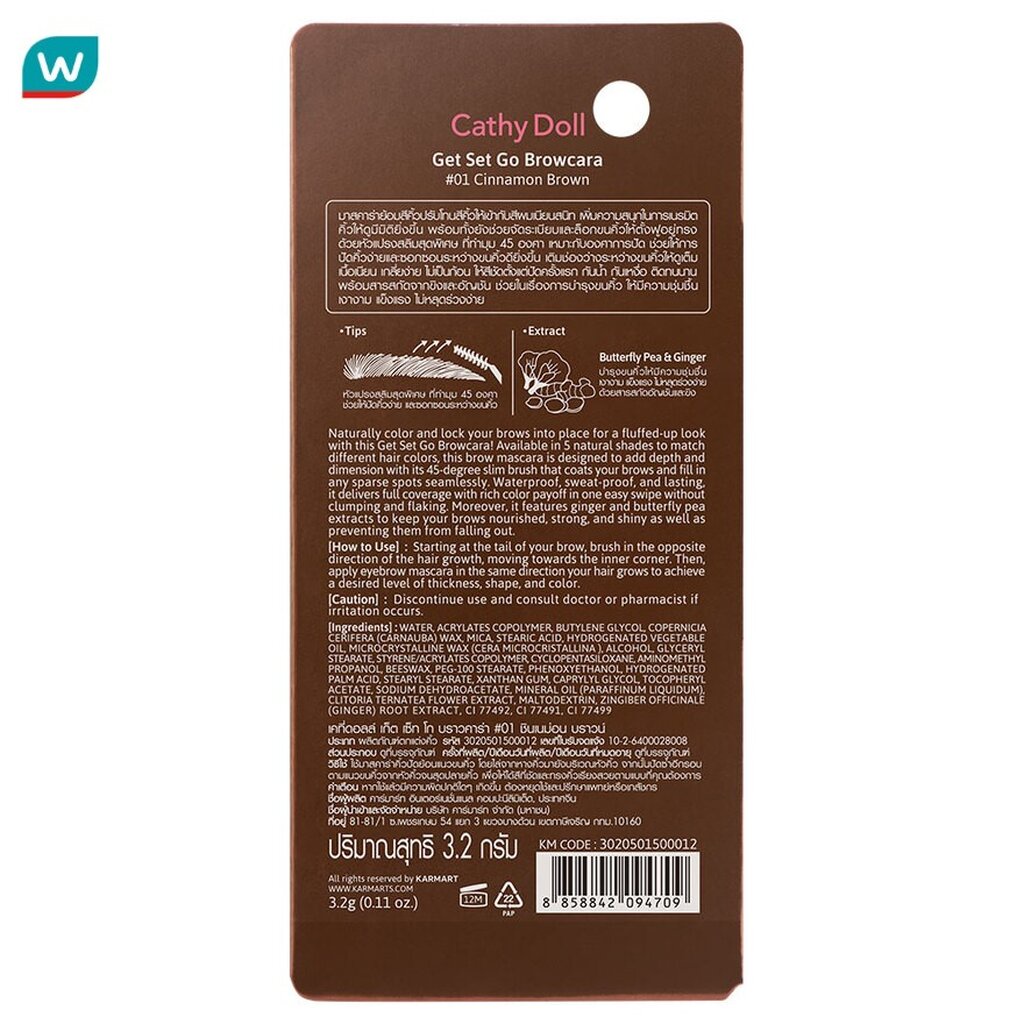 Cathy Doll เคที่ ดอลล์ เก็ต เซ็ท โก บราวคาร่า มาสคาร่าคิ้ว 3.2ก. 01 ชินเนม่อน บราวน์