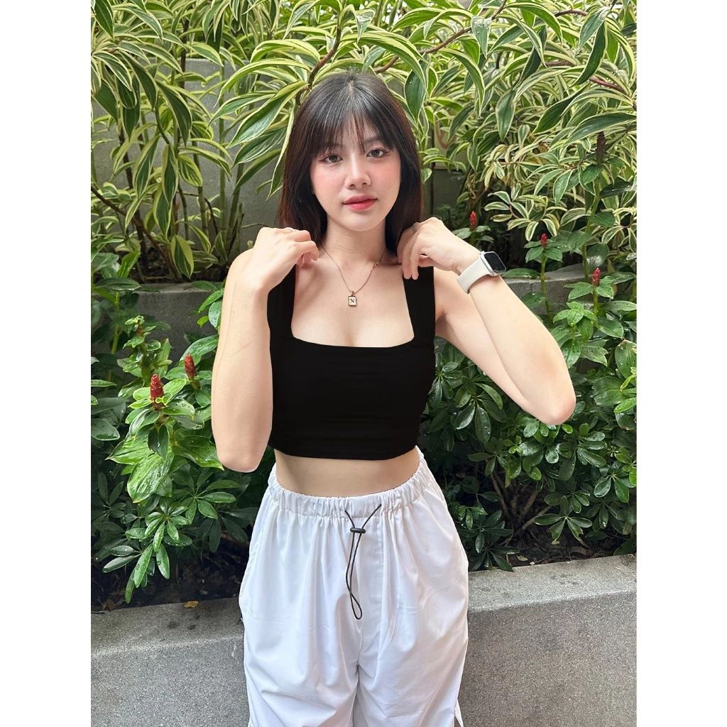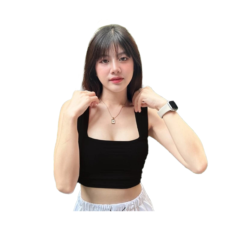เสื้อกล้ามครอป รุ่น Crop Bra ผ้าเรย่อน สาวอวบใส่ได้ มี/ไม่มีฟองน้ำ ใส่ออกกำลังกาย สีดำ 🌈 ใส่สบาย ยืดหยุ่นดี