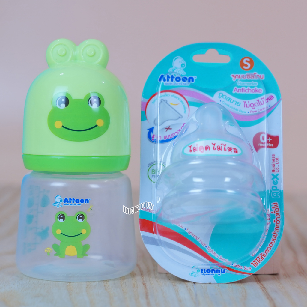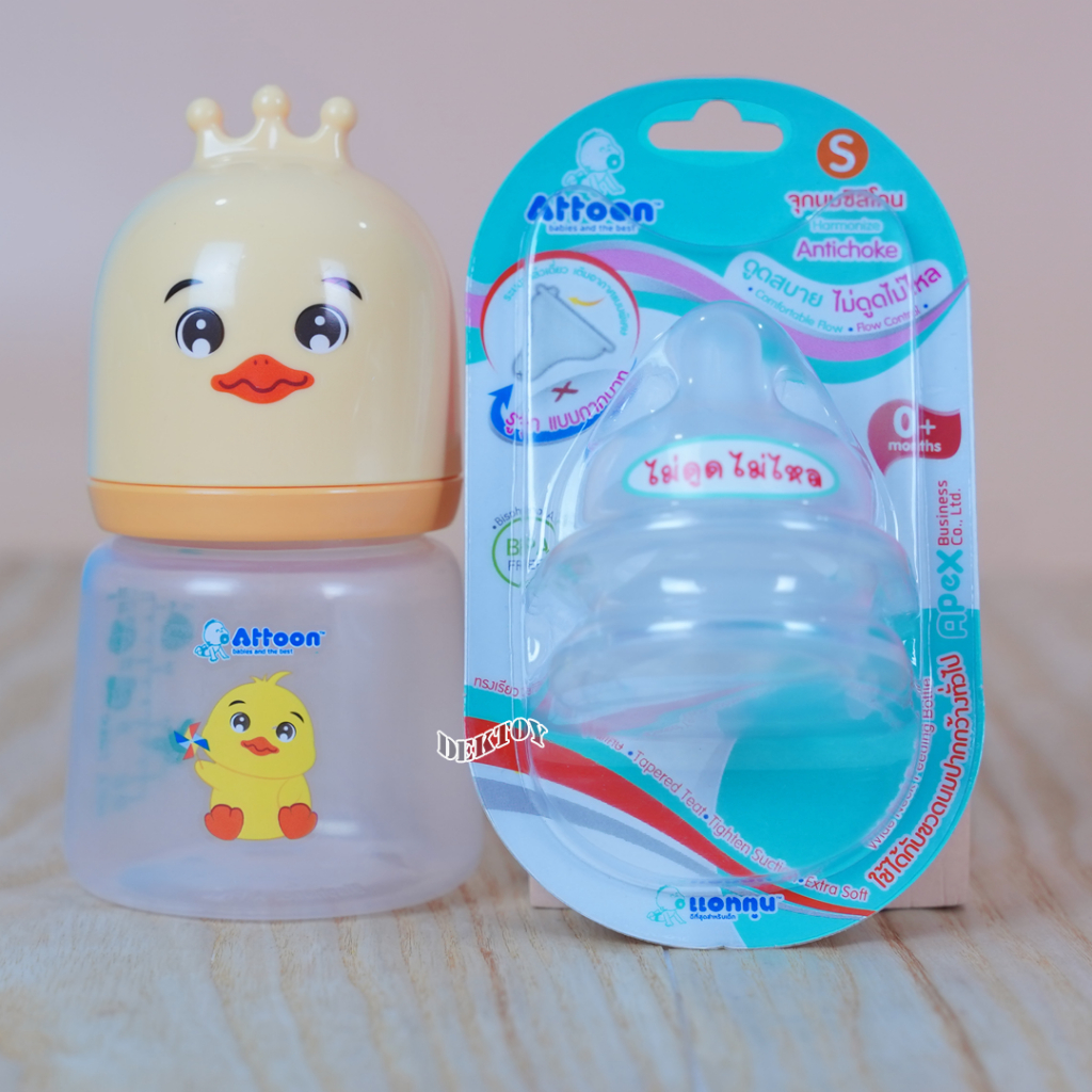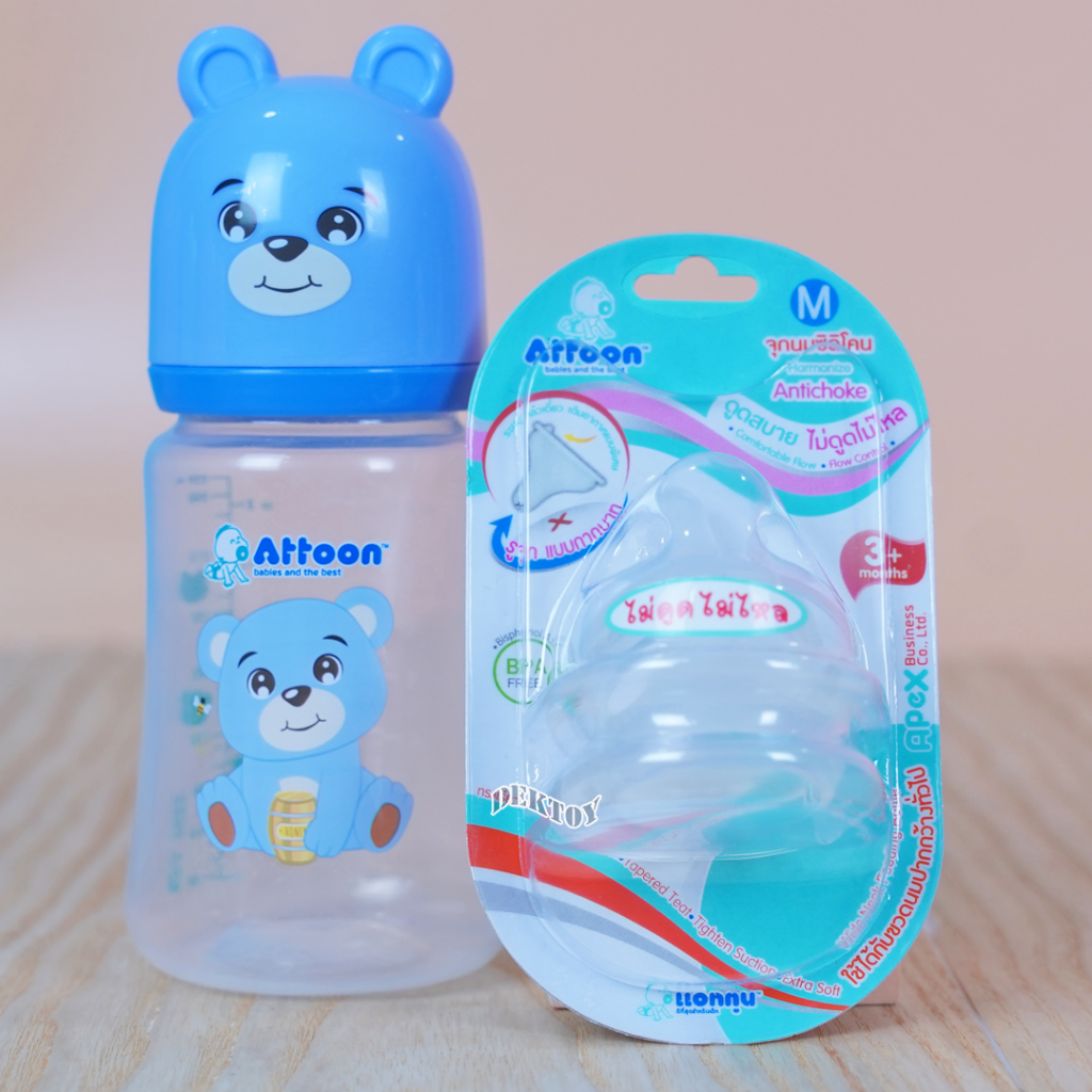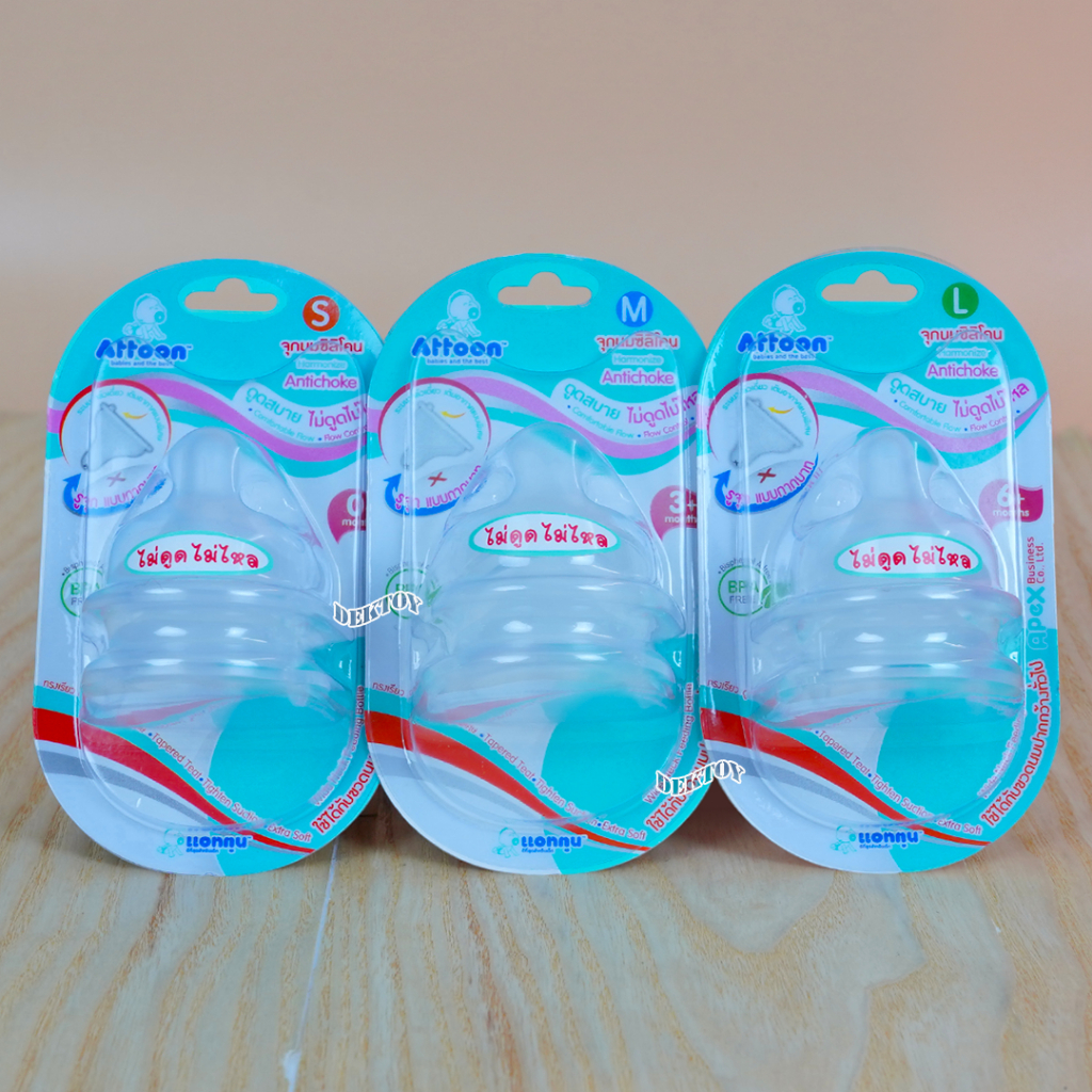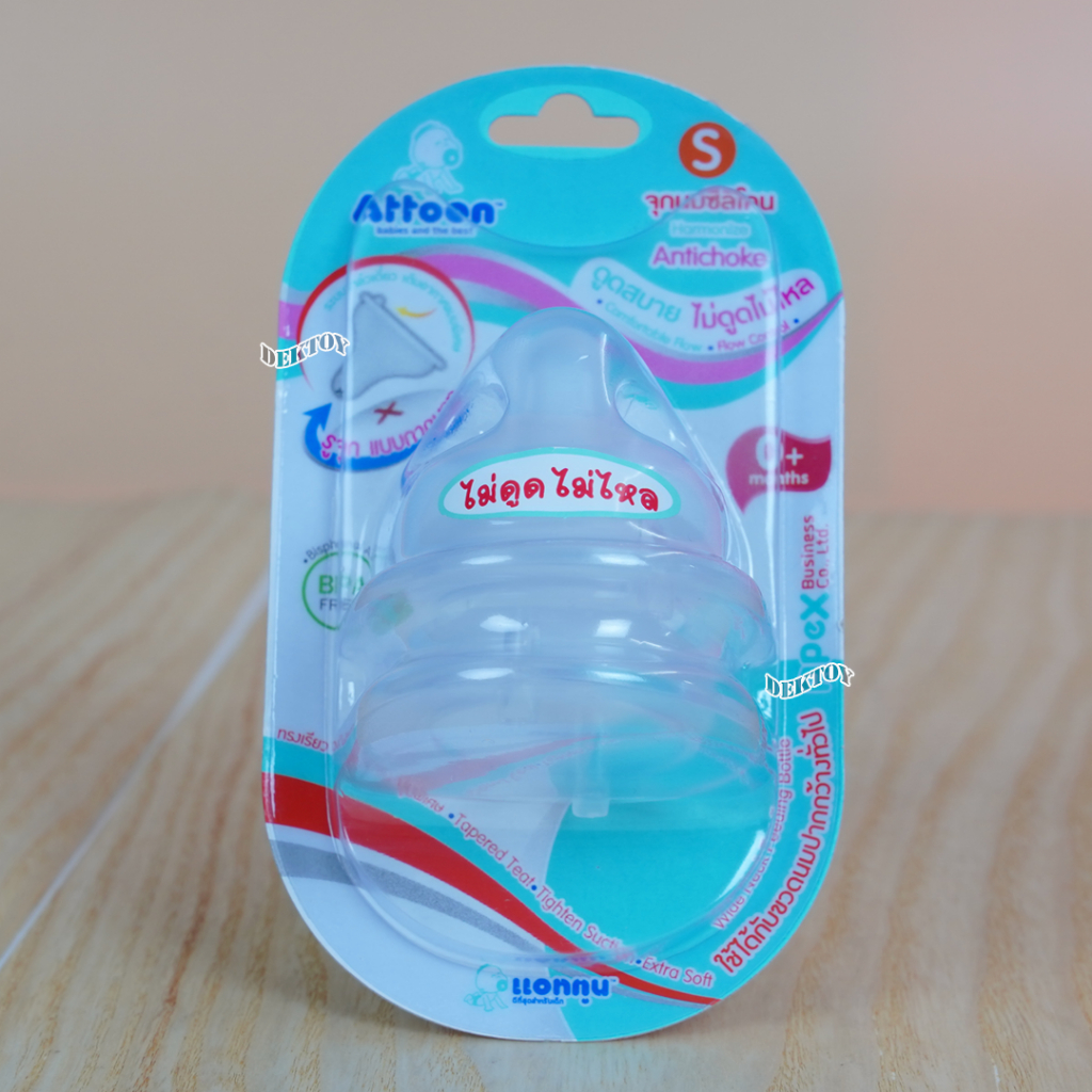 คอกว้าง จุกนมไม่ดูดไม่ไหลคอกว้าง Attoon แอทตูน จุกนุ่ม จุกนมคอกว้างรูจุกแบบกากบาทX แพ็ค2ชิ้น