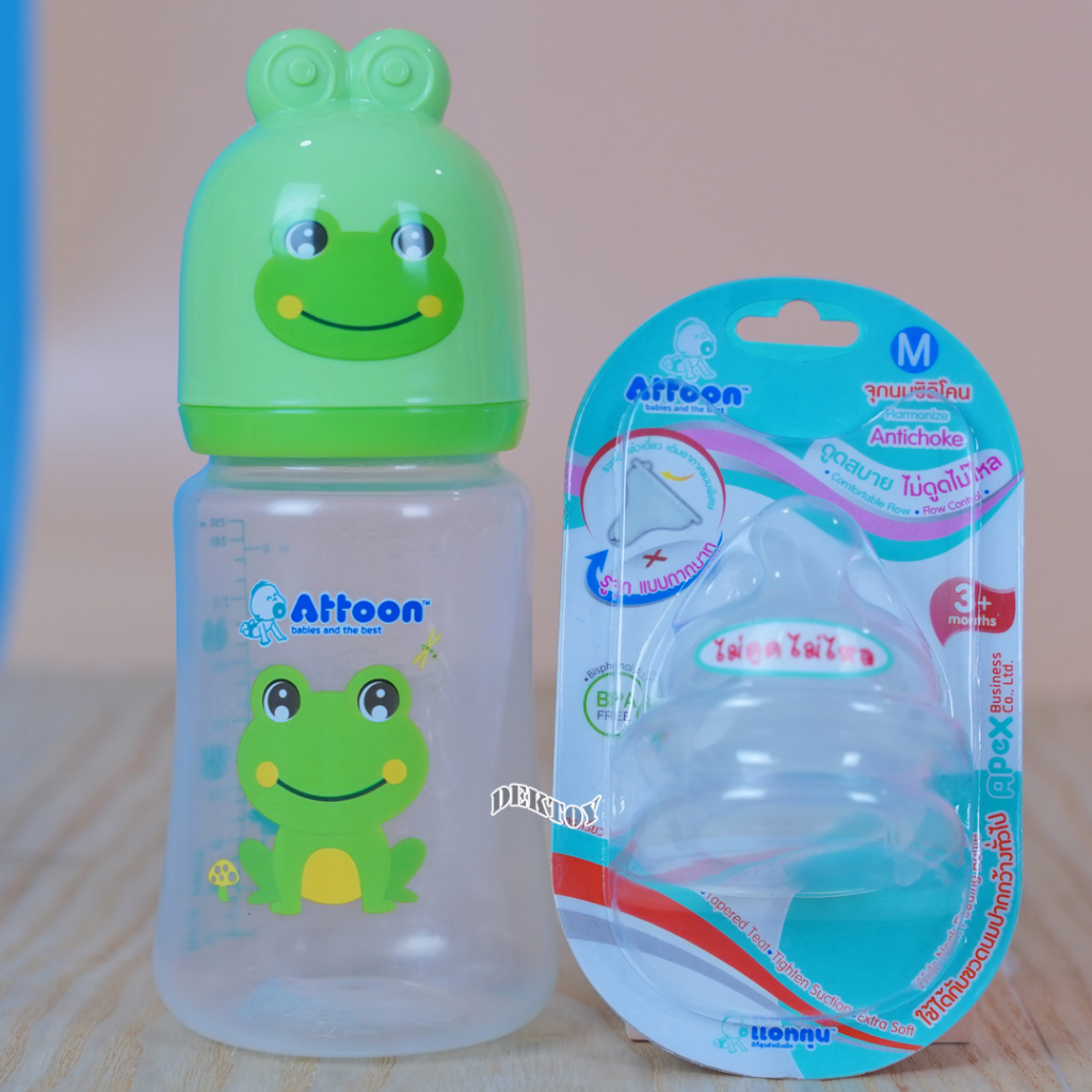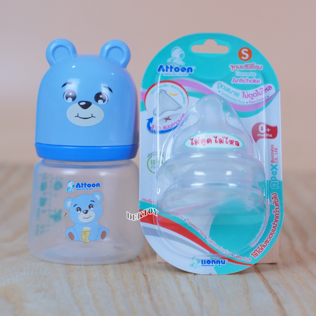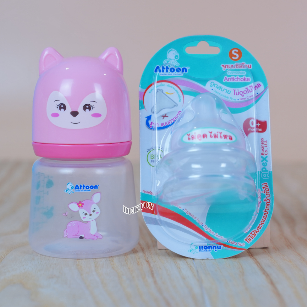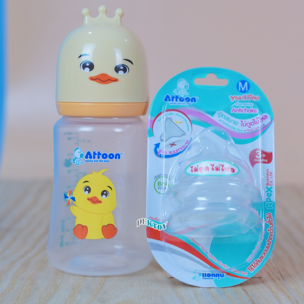คอกว้าง จุกนมไม่ดูดไม่ไหลคอกว้าง Attoon แอทตูน จุกนุ่ม จุกนมคอกว้างรูจุกแบบกากบาทX แพ็ค2ชิ้น