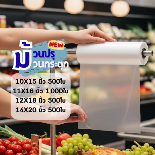 ถุงพลาสติกแบบม้วน สำหรับใส่ผัก ผลไม้ ของสด ม้วนละ 500/1000 ใบ