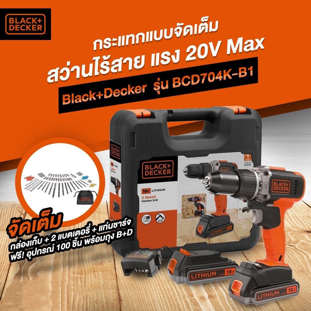 Black+Decker ชุดสว่านกระแทกไร้สาย 20 โวลต์ (Max) รุ่น BCD704K-B1