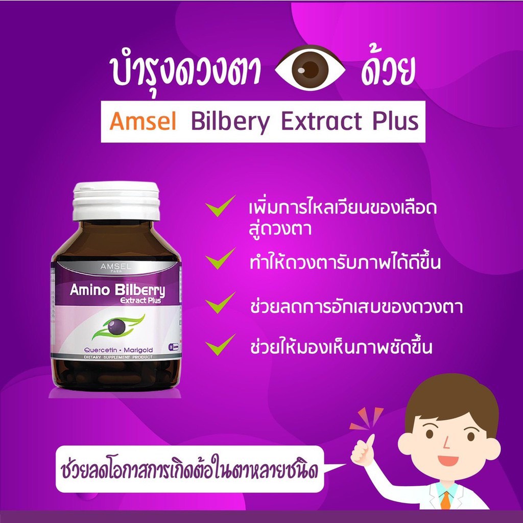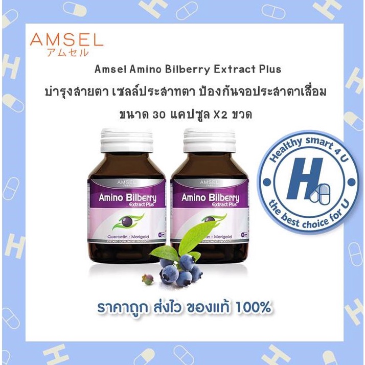 ((ของแท้ร้านยา)) 2ขวด Amsel Amino Bilberry อาหารเสริมบำรุงดวงตา (30 แคปซูล)