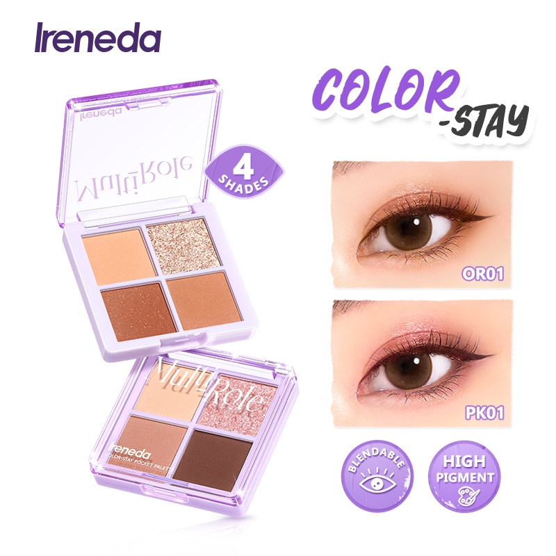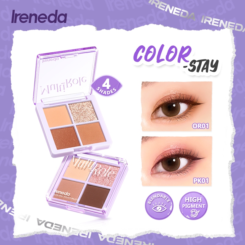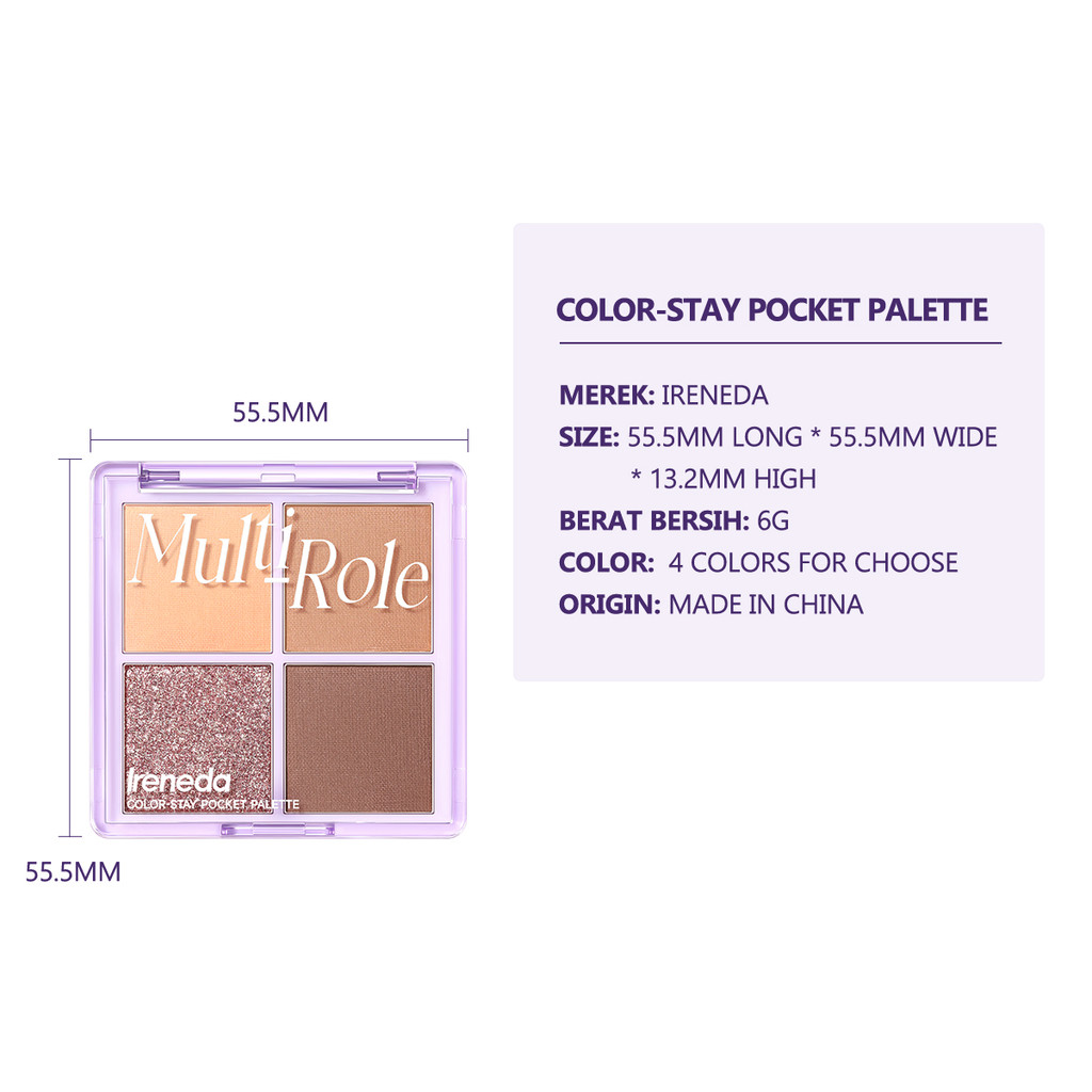 Ireneda Color-stay Pocket Palette พาเลทอายแชโดว์ติดทนนานเม็ดสีสูงแบบพกพา Smooth Matte 4 เฉดสี