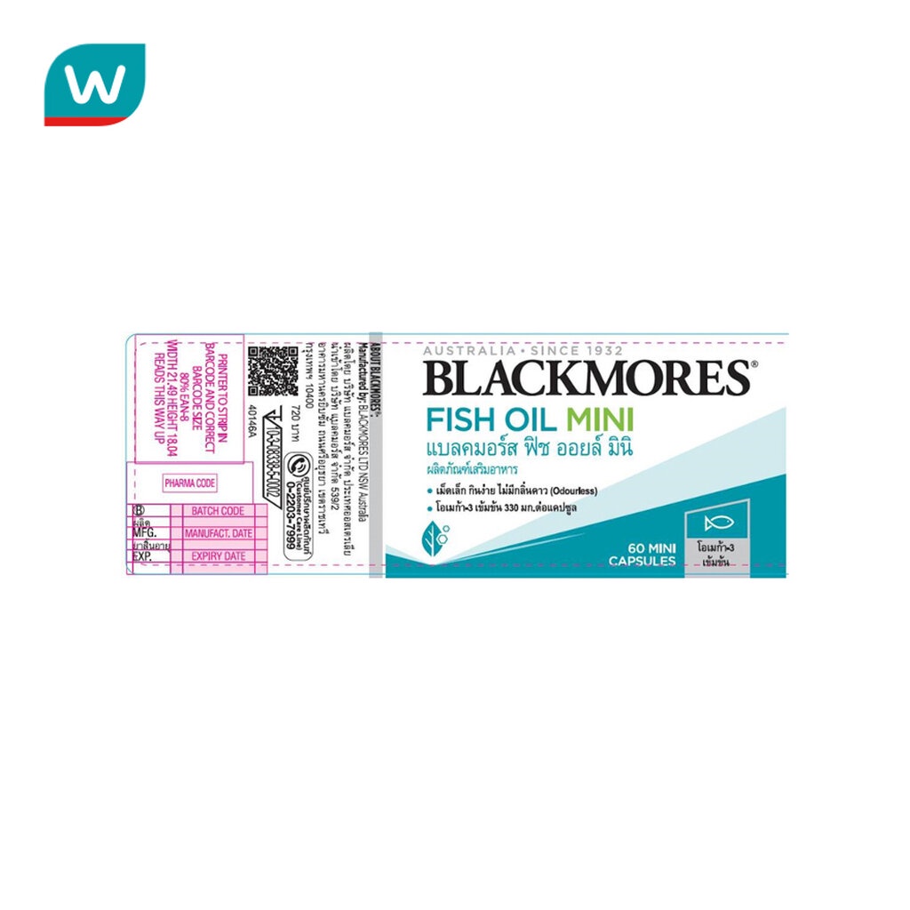 Blackmores แบลคมอร์ส โอเดอร์เลส ฟิช ออยล์ มินิแคป 60 แคปซูล
