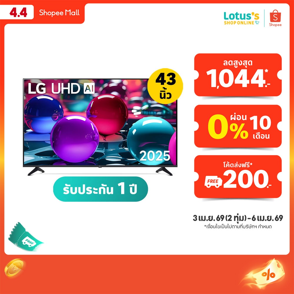 แอลจี สมาร์ท ทีวี UHD AI 4K ขนาด 43 นิ้ว รุ่น 43UA7350PSB.ATMQ LG SMART TV UHD AI 4K 43 INCH MODEL 43UA7350PSB.ATMQ