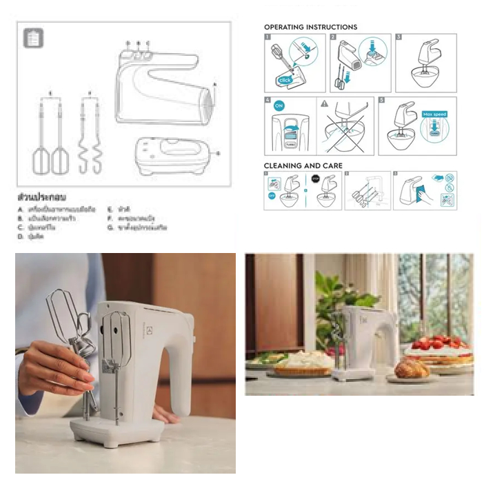 ELECTROLUX เครื่องผสมอาหารมือถือ 500 วัตต์ E3HM1-100W พร้อมแท่นวาง รับประกันศูนย์ 2ปี