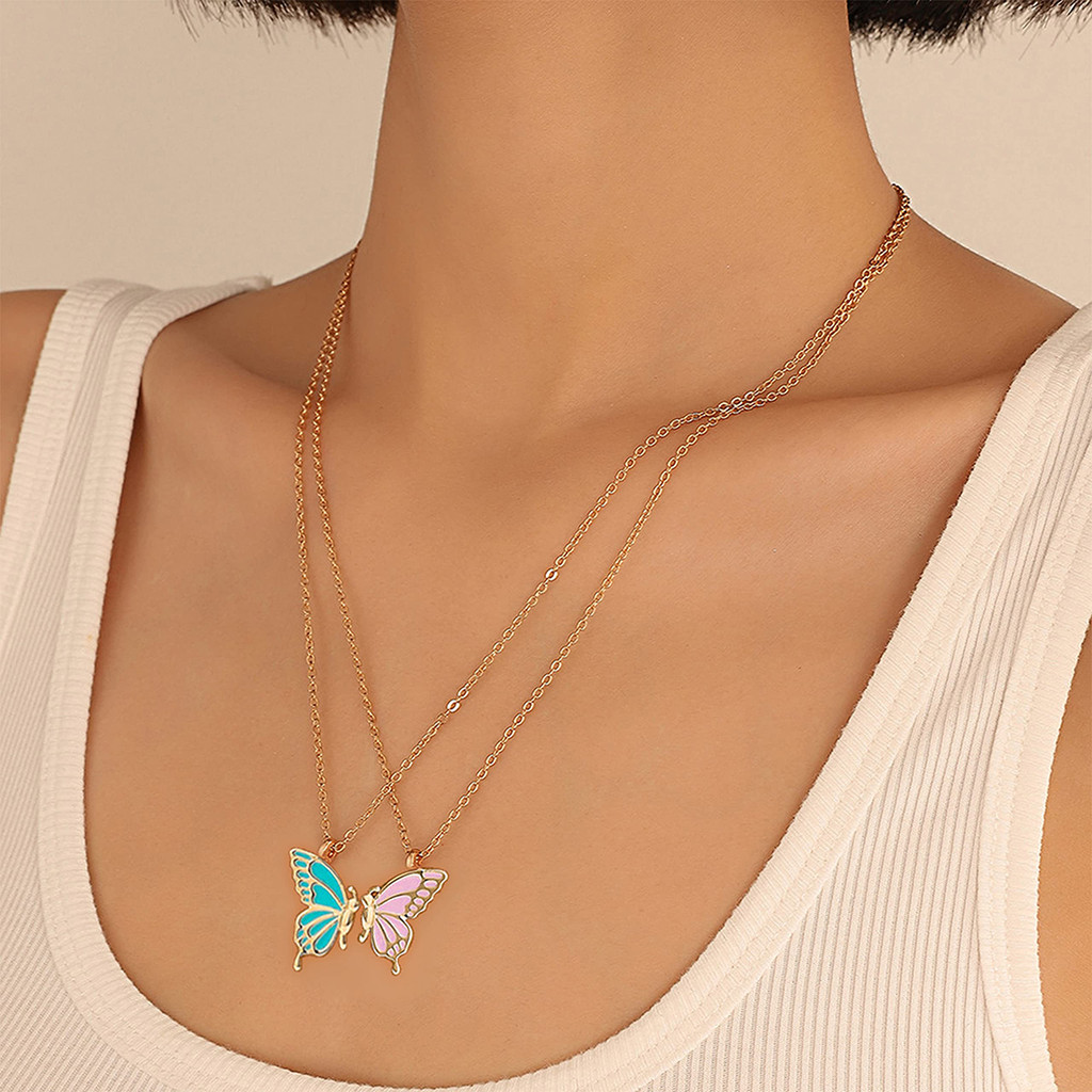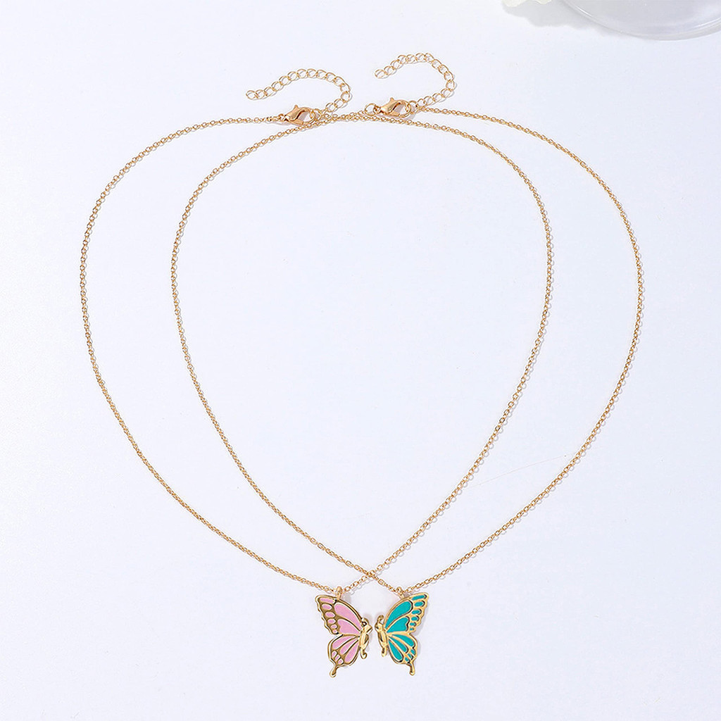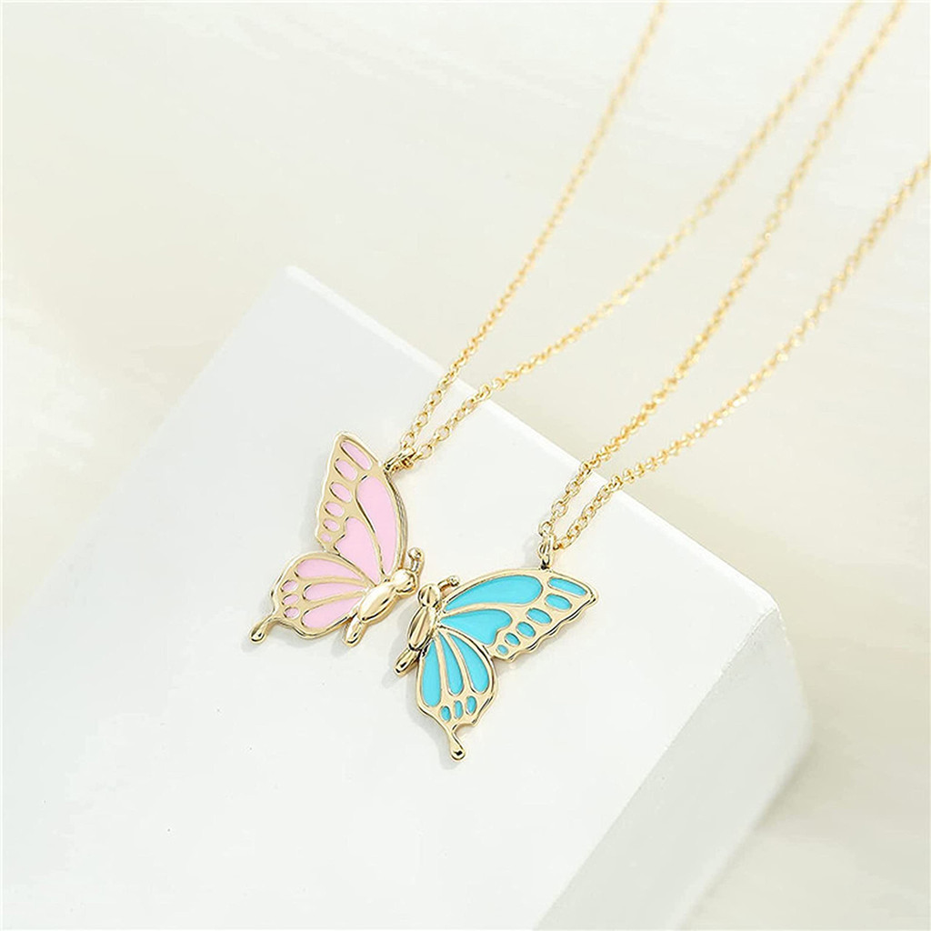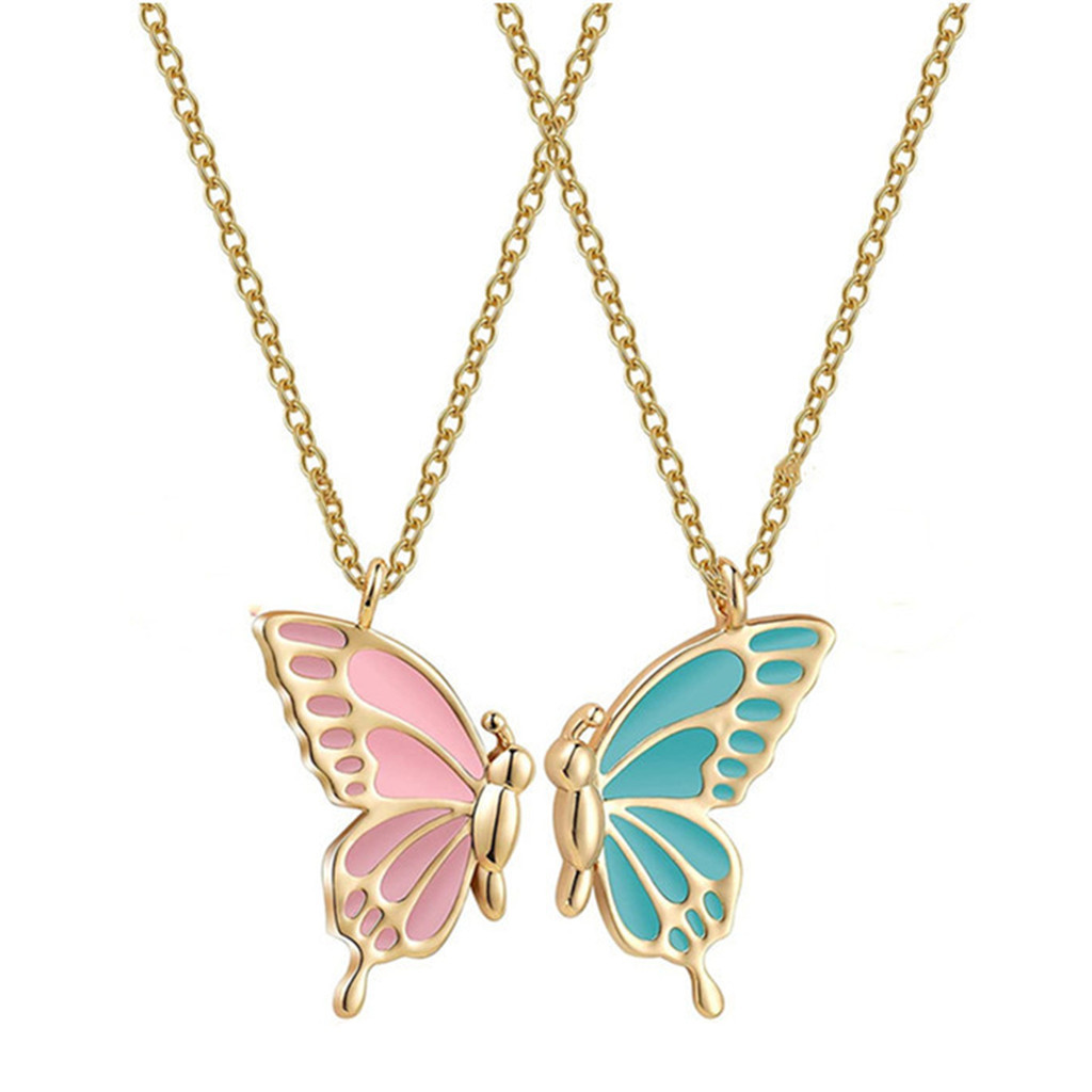 สร้อยคอผีเสื้อที่ละเอียดอ่อนสําหรับผู้หญิงคู่เพื่อนที่ดีที่สุดแฟชั่นผีเสื้อเย็บจี้