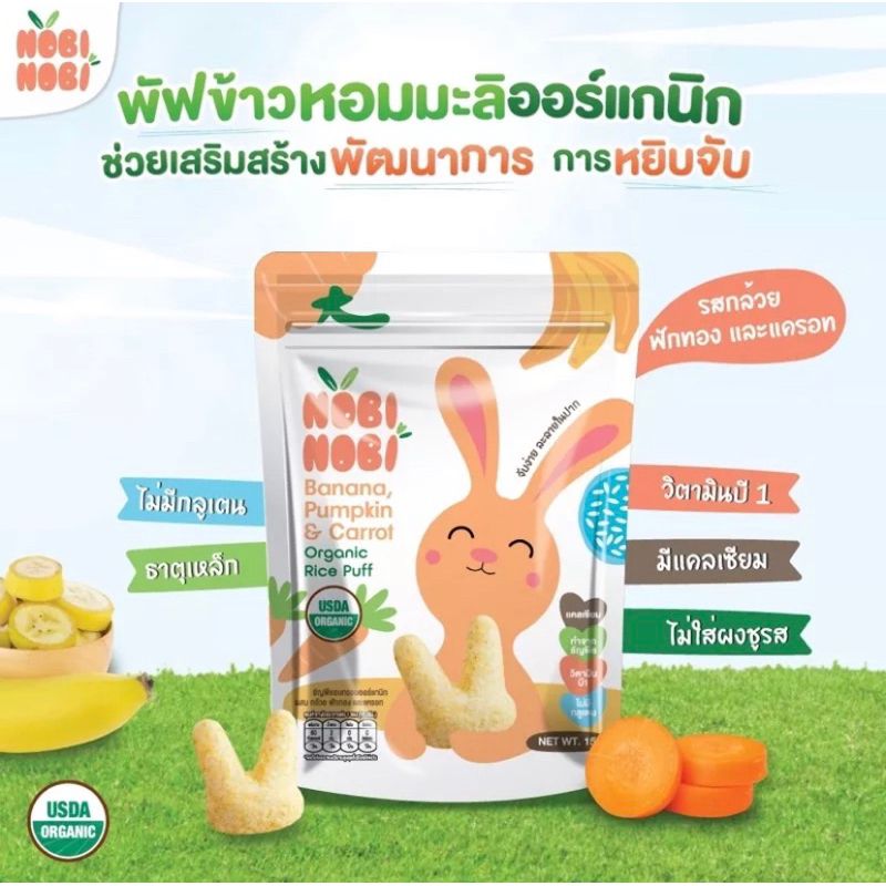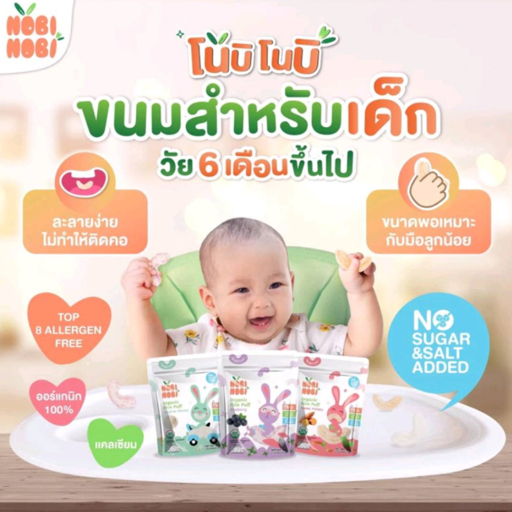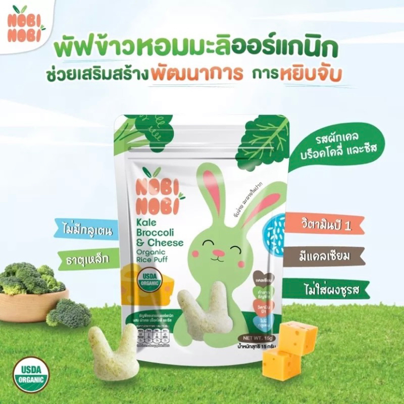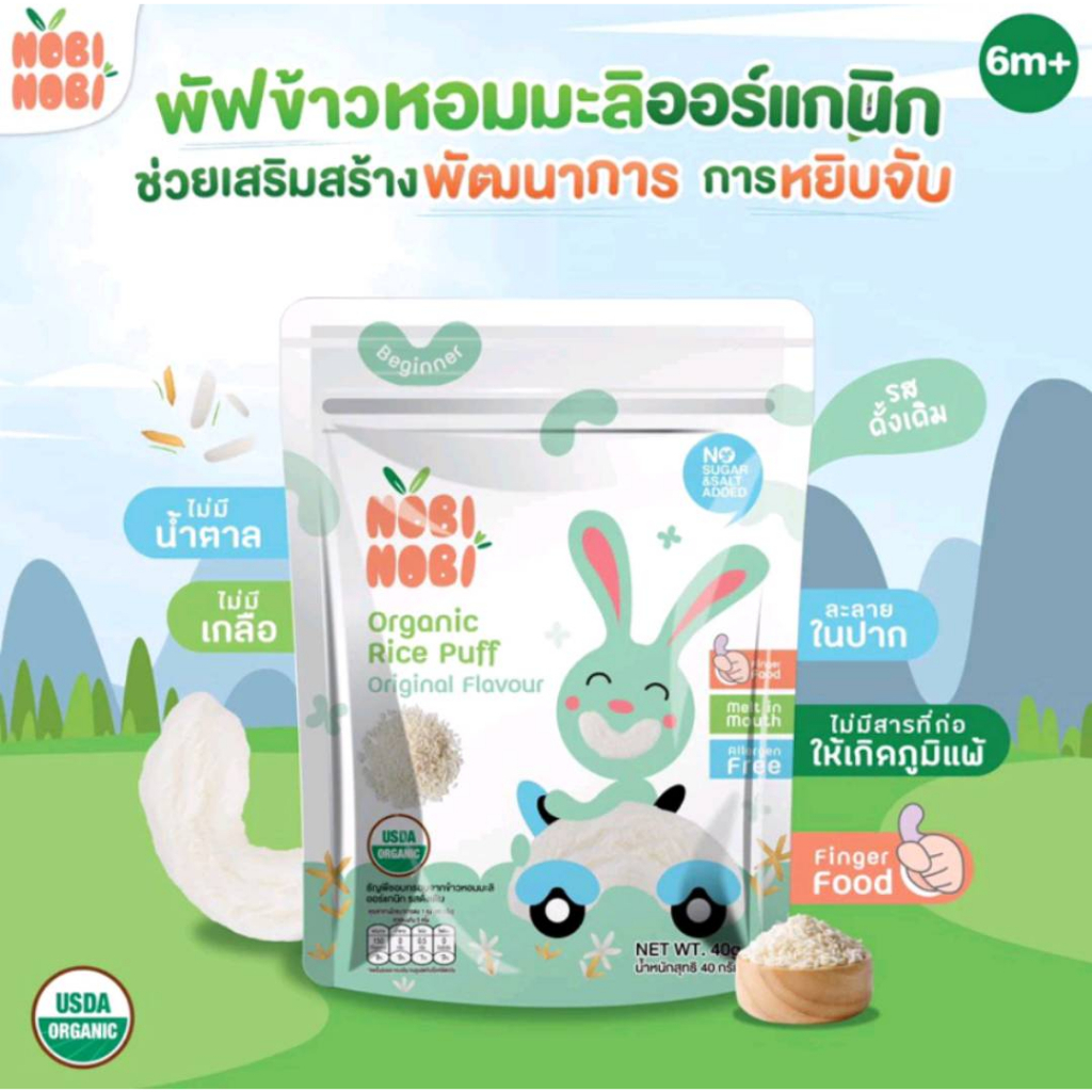 Nobi Nobi โนบิโนบิ ขนมข้าวหอมมะลิ ออร์แกนิก และพัฟ 15g 40g ขนมเด็ก แคลเซี่ยมสูง ขนมสำหรับเด็ก 6M+