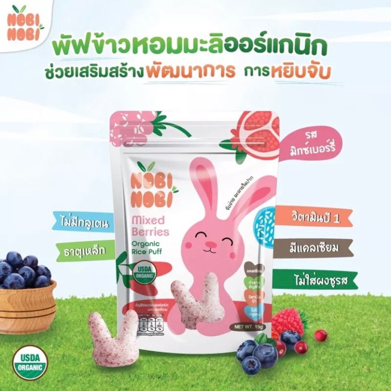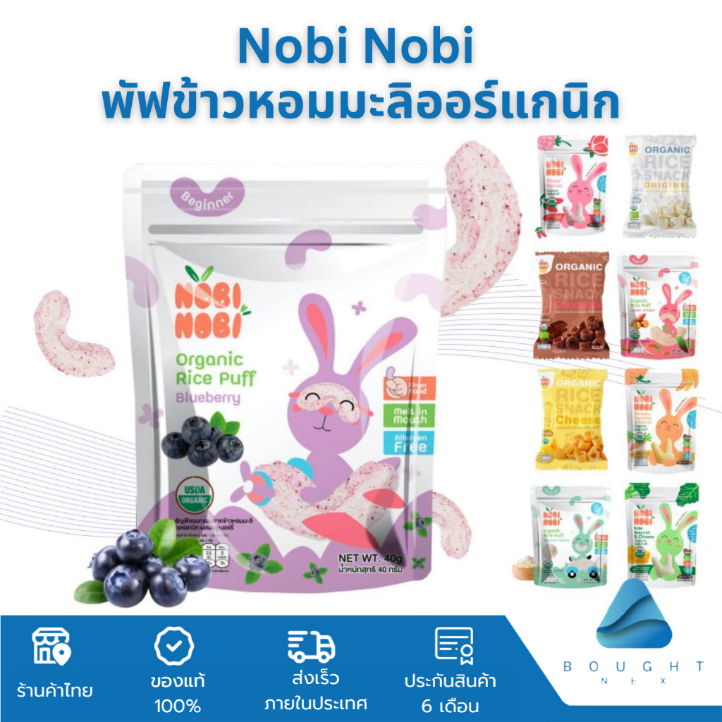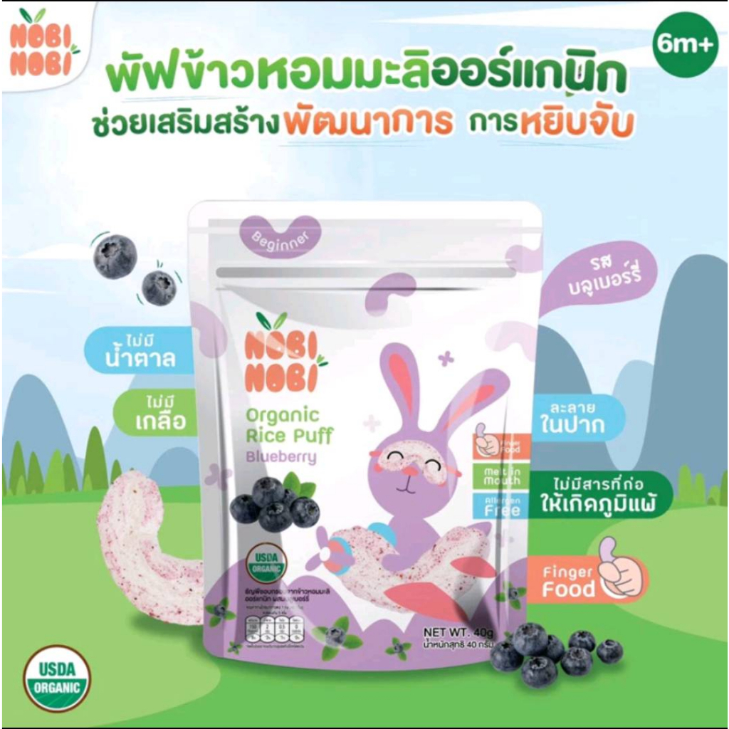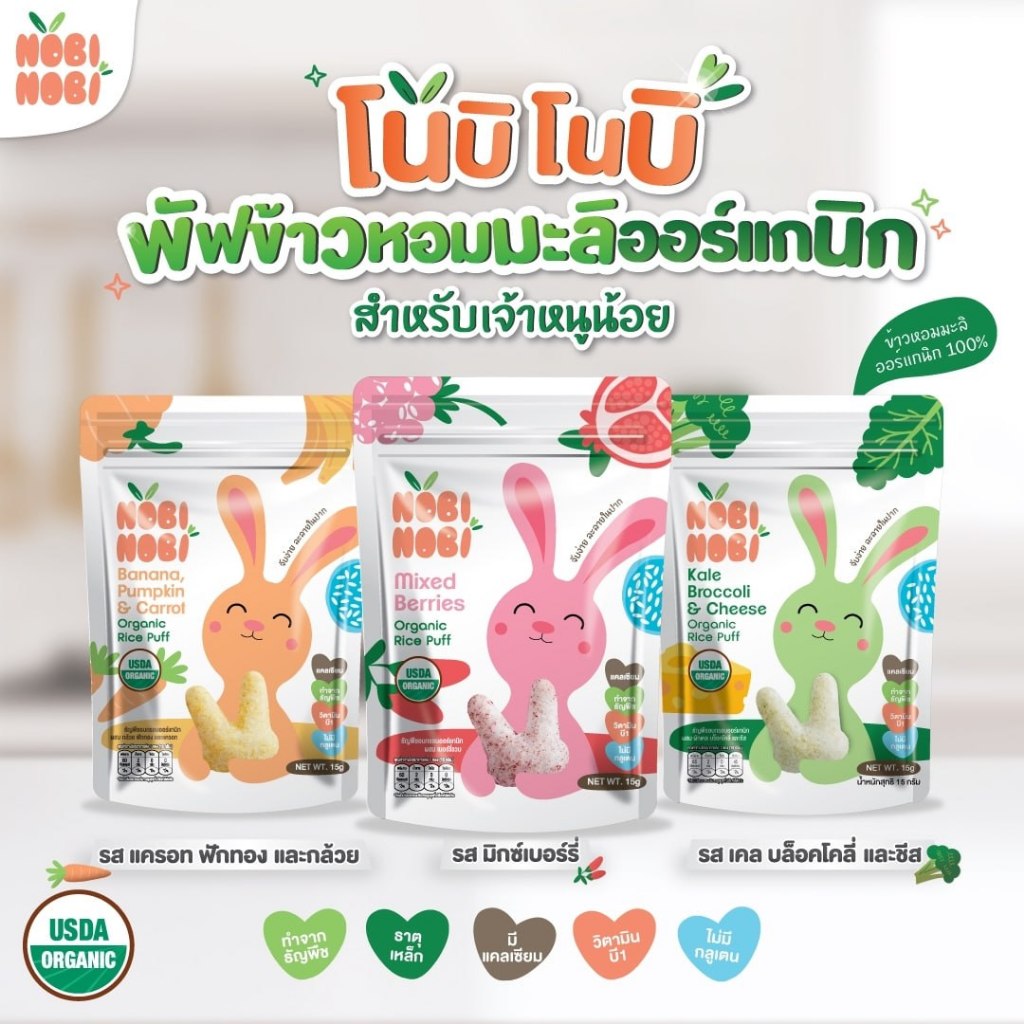 Nobi Nobi โนบิโนบิ ขนมข้าวหอมมะลิ ออร์แกนิก และพัฟ 15g 40g ขนมเด็ก แคลเซี่ยมสูง ขนมสำหรับเด็ก 6M+