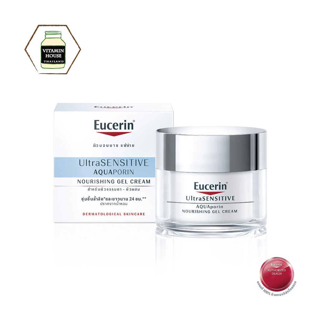 Eucerin UltraSENSITIVE AQUAporin Gel Cream [50 ML] ผลิตภัณฑ์บำรุงผิวหน้าเนื้อเจลครีมสำหรับผิวบอบบาง แพ้ง่าย ขาดน้ำ
