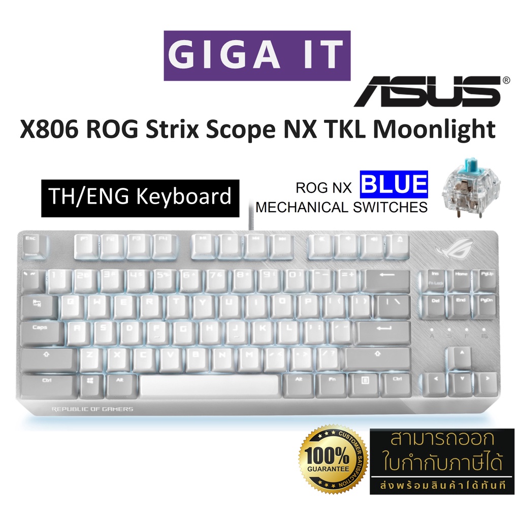 ASUS X806 ROG Strix Scope NX TKL Moonlight Keyboard NX Mechanical w/RED, BROWN, BLUE Switches (THA/ENG) ประกันศูนย์ 2 ปี