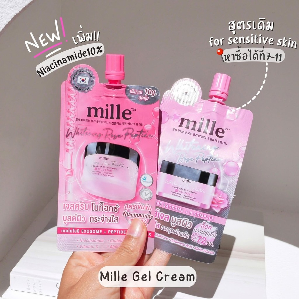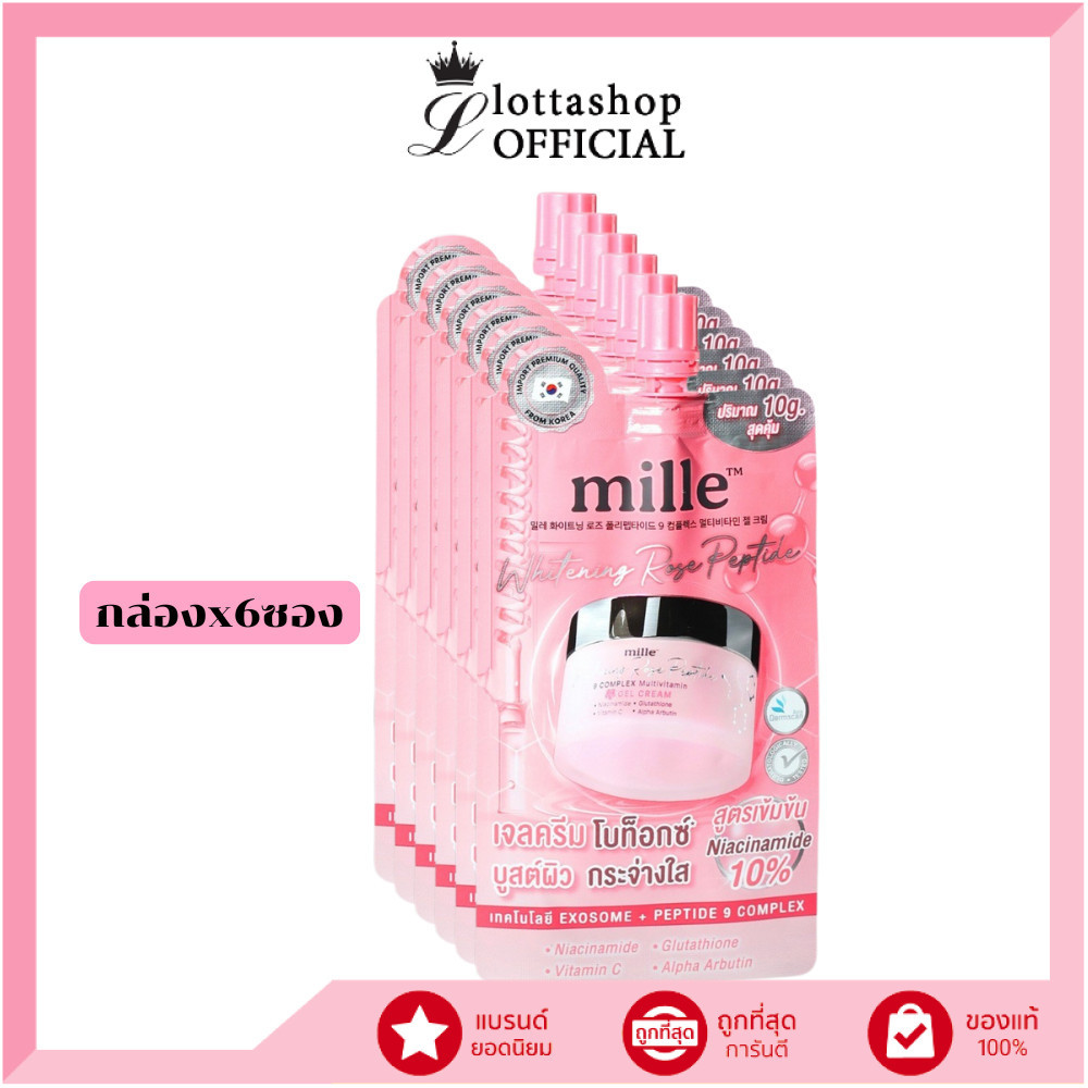 🔥แท้/ถูกที่สุด/ไลฟ์ทุกวัน🔥(กล่องx6ซอง) MILLE WHITENING ROSE PEPTIDE 9 COMPLEX GEL CREAM 6g.