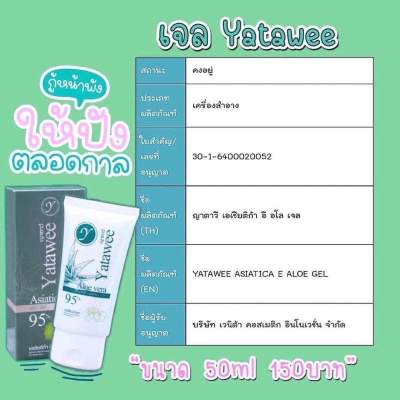 โฉมใหม่เจลใบบัวบก ญาตาวี Yatawee ลดสิวหน้าใส 50g (โฉมใหม่)