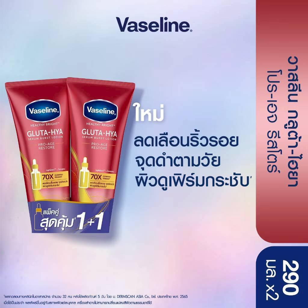 (1แถม1)วาสลีน เฮลธี้ ไบรท์ กลูต้า-ไฮยา เซรั่ม เบิสท์ โลชั่น โปร-เอจ รีสโตร์ 290 มล.