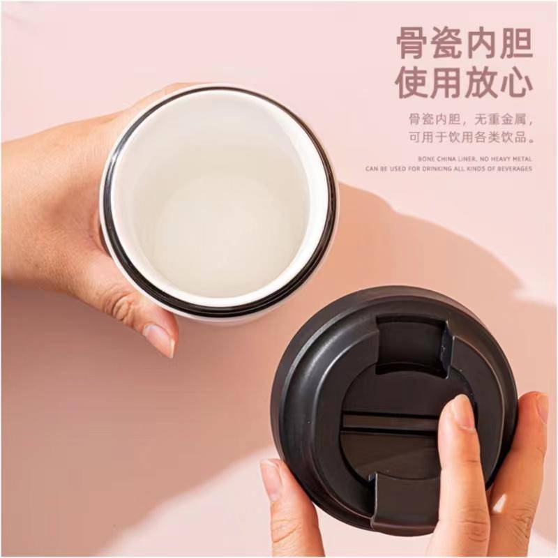 【LUCKY】แก้วเก็บความร้อน เซรามิค สำหรับออฟฟิศ มีฝาปิด ซีลและกันรั่ว ถ้วยกาแฟ แก้วน้ำ