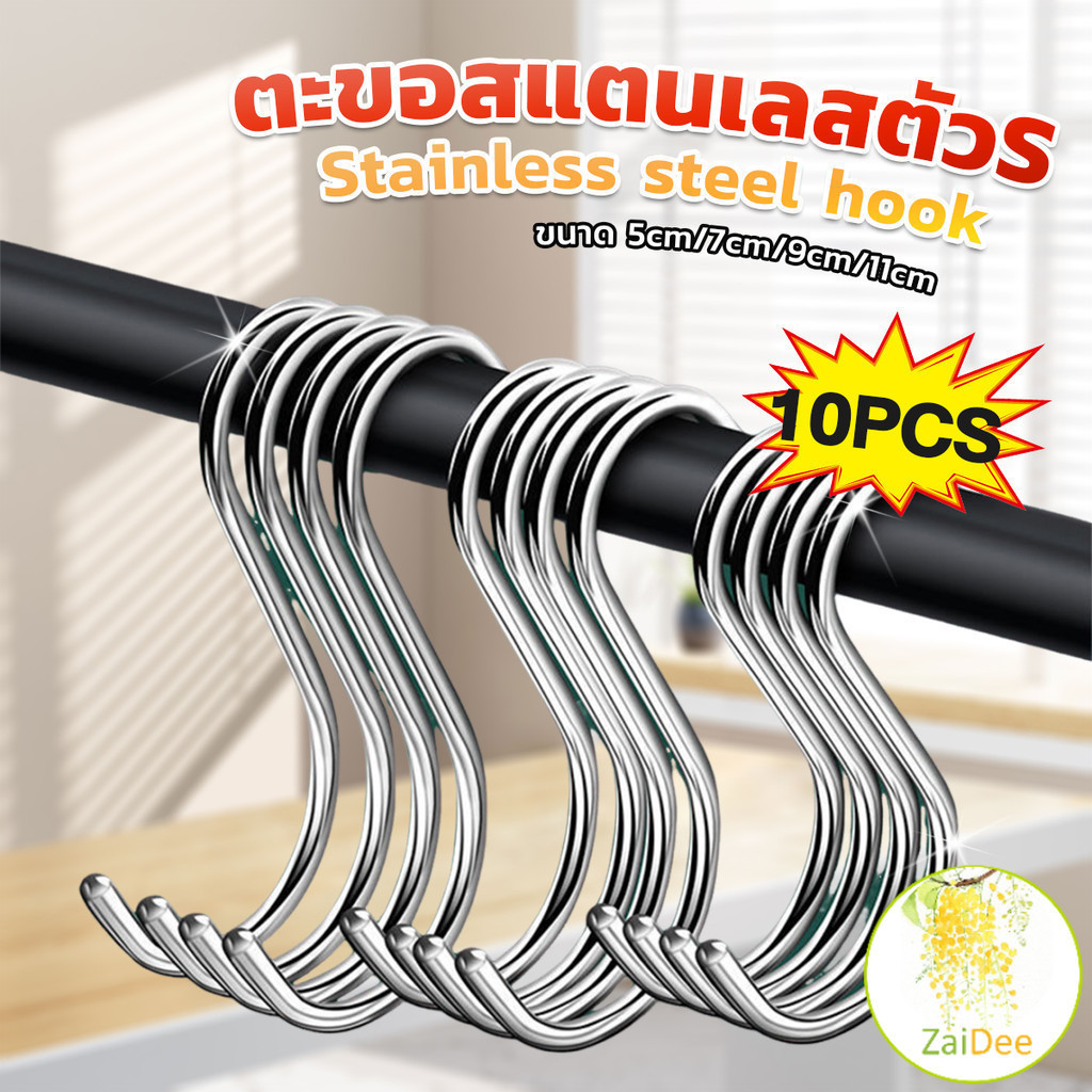 ตะขอตัวเอส แพ็ค 10 ชิ้น สแตนเลส อเนกประสงค์ 11 cm S-hook