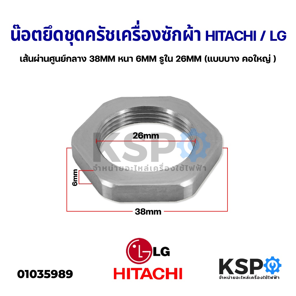 น๊อตยึดชุดครัช เครื่องซักผ้า HITACHI ฮิตาชิ LG แอลจี เส้นผ่านศูนย์กลาง 38MM หนา 6MM รูใน 26MM (แบบบาง คอใหญ่ )