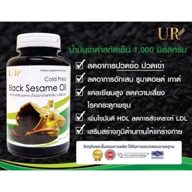 Black Sesame Oil น้ำมันงาดำสกัดเย็น 1,000 มก. บรรจุ100 เม็ด