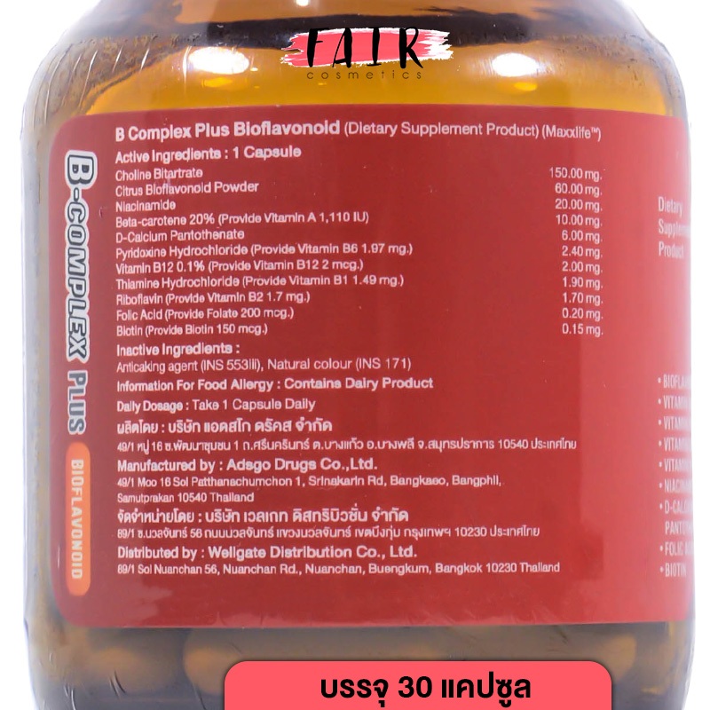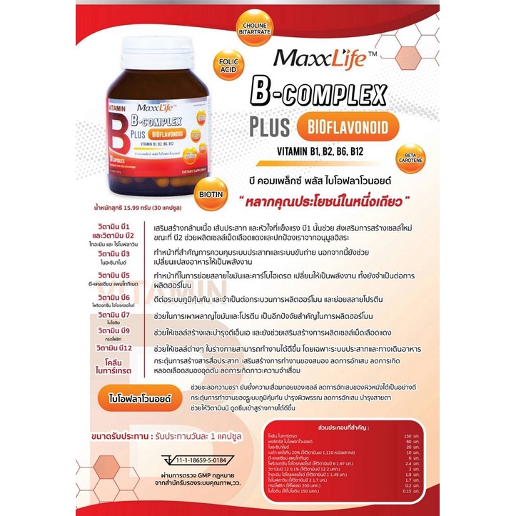 MaxxLife B Complex Plus Bioflavonoid แม็กซ์ไลฟ์ บี คอมเพล็กซ์ พลัส ไบโอฟลาโวนอยด์ [30 แคปซูล]