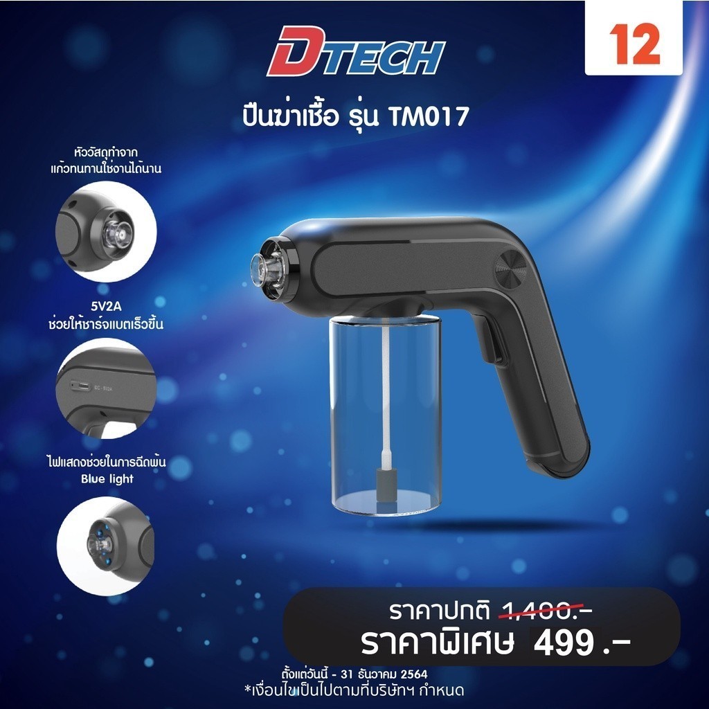 DTECH รุ่น TM017 ปืนฉีดฆ่าเชื้อโรคละอองนาโน ฆ่าเชื้อนาโนไร้สายแสงสีฟ้า ฉีดกระจายวงกว้าง (ประกันศูนย์ 3 เดือน)