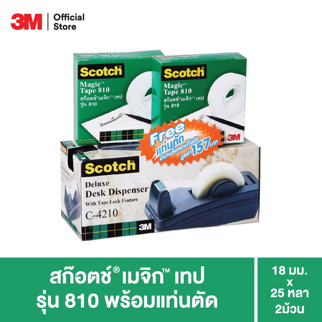 3M™ Scotch® สก๊อตช์ เทป พร้อมแท่นตัด, รุ่น 810, 2 ม้วน, 3/4" X 25Yards