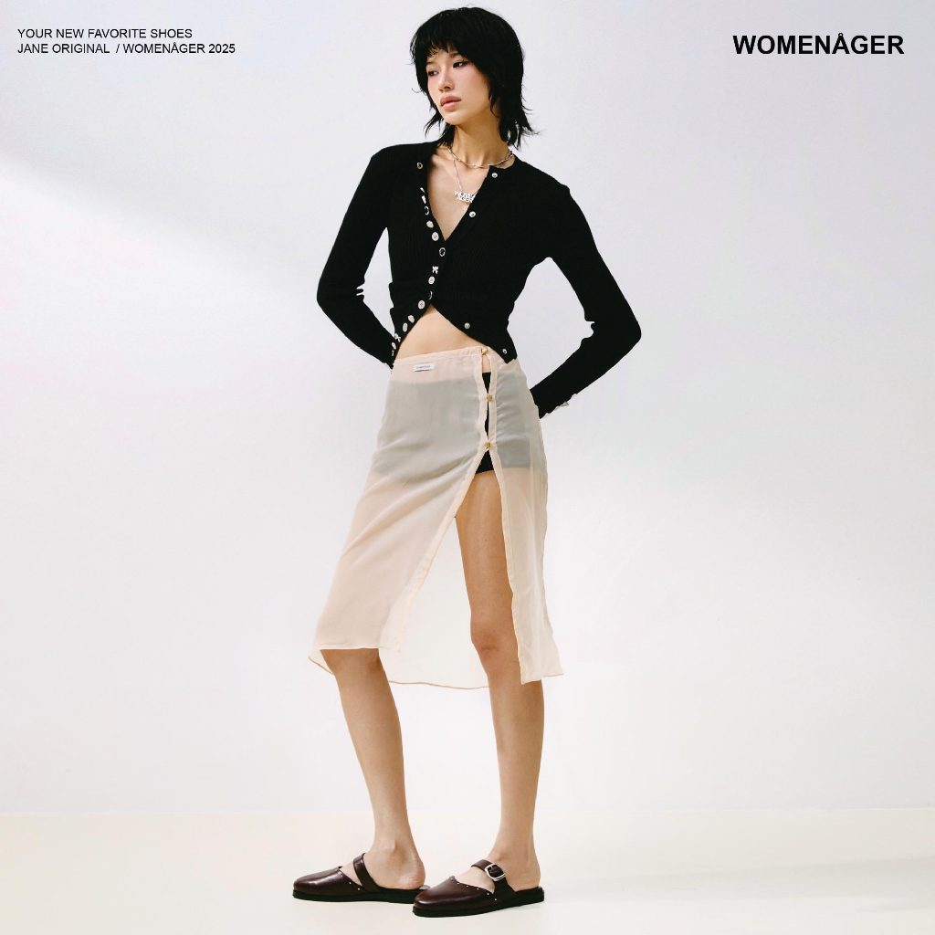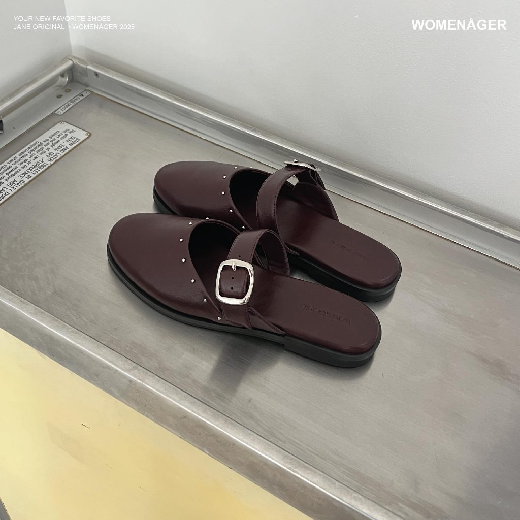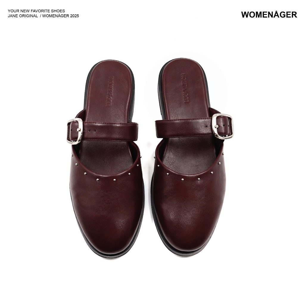 womenager - Jane Original สี Plum with metal studs รองเท้าแตะคัทชูเปิดส้น สวมใส่ง่าย
