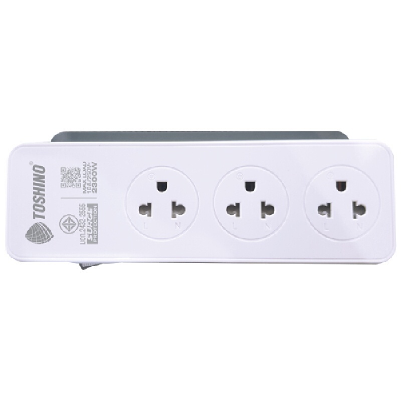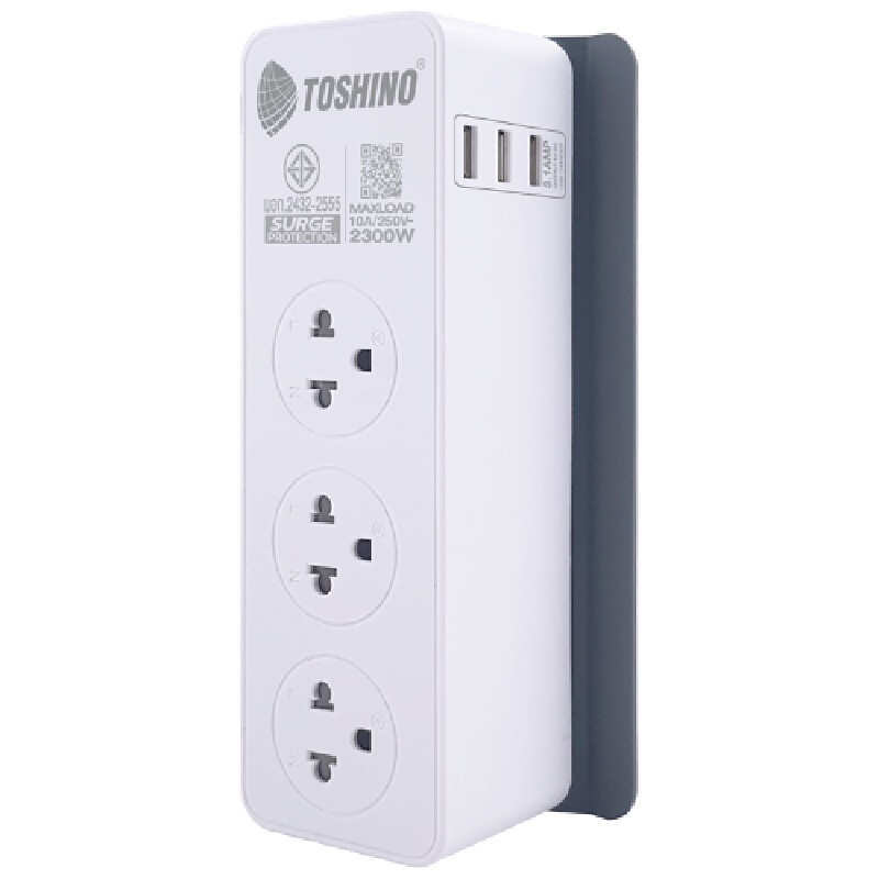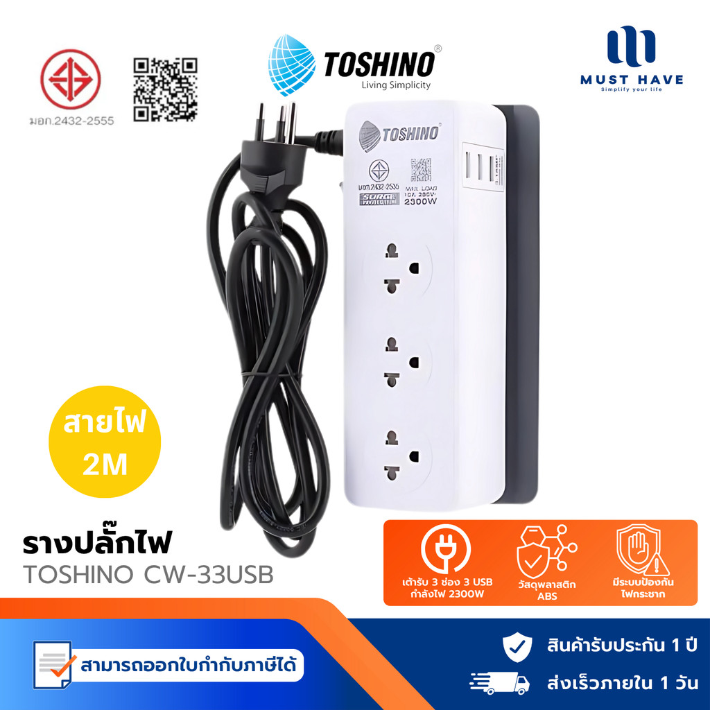 Toshino CW-33USB รางปลั๊ก มอก. 3 ช่อง+3 USB สายยาว 2 ม. ระบบป้องกันไฟกระชาก มีระบบป้องกันไฟเกิน+ควบคุมการใช้งาน