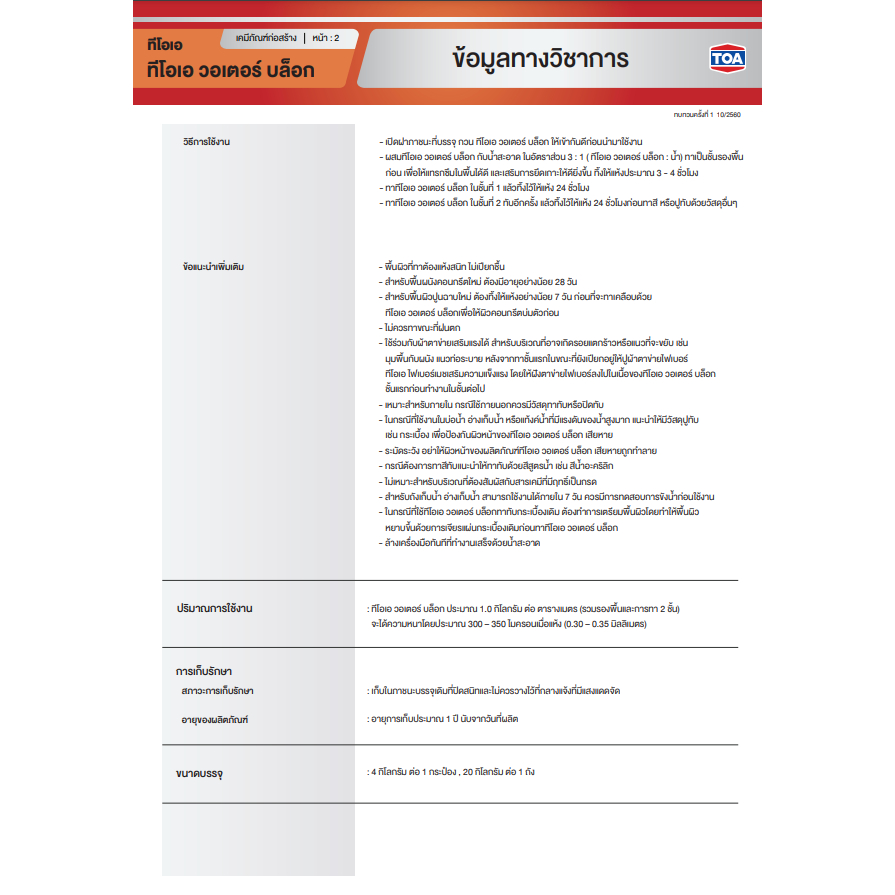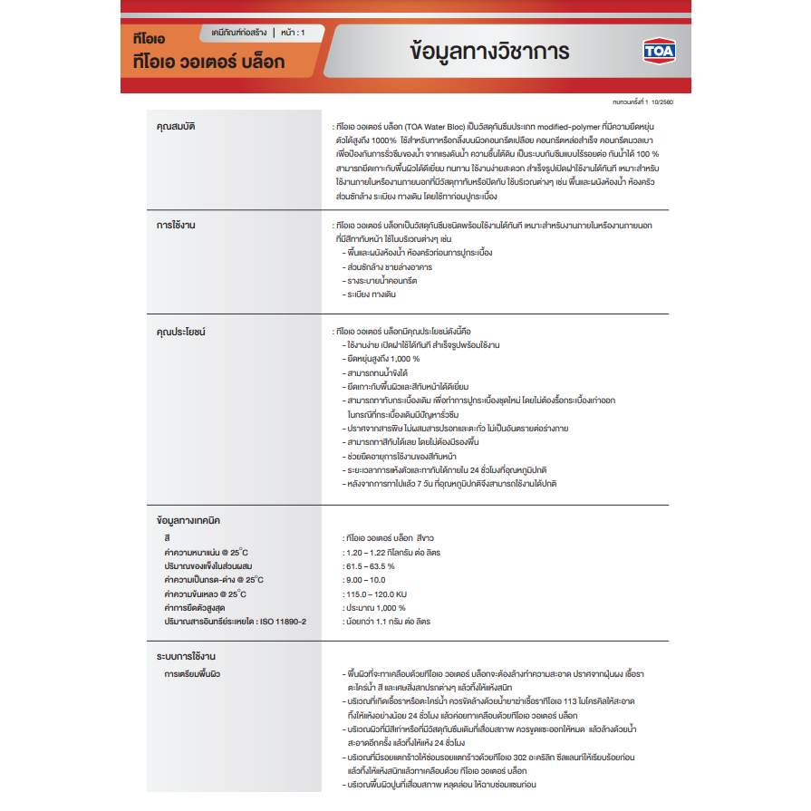 TOA Water Bloc ทีโอเอ วอเตอร์บล็อก (5 กล.) (20 กก.) โพลิเมอร์สังเคราะห์ กันซึม ยืดหยุ่นพิเศษ กันน้ำได้ 100% วอเตอร์บล็อค