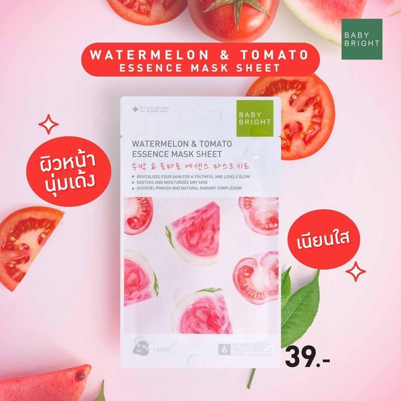 ส่งฟรี/มีไลฟ์ (1แผ่น) Baby Bright Mask Watermelon/Lemon/Pearl/Maqui Berry/ALOE VERA เบบี้ไบร์ท มาส์กชีท แผ่นมาส์กหน้า
