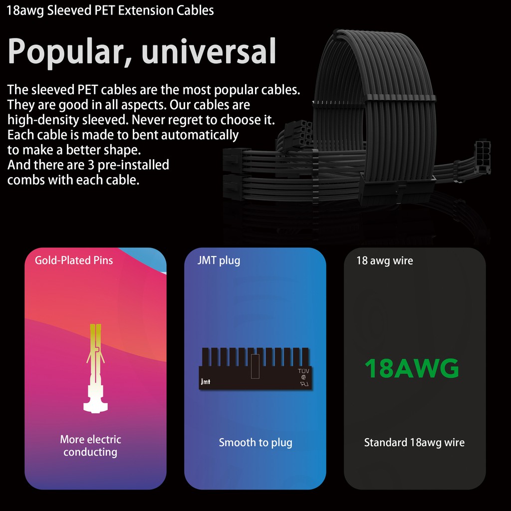 Black sleeved motherboard graphics card extension cable graphics card mod cables
