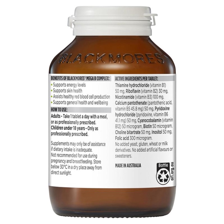 Blackmores Mega B Complex Energy Support Vitamin B12 200 Tablets