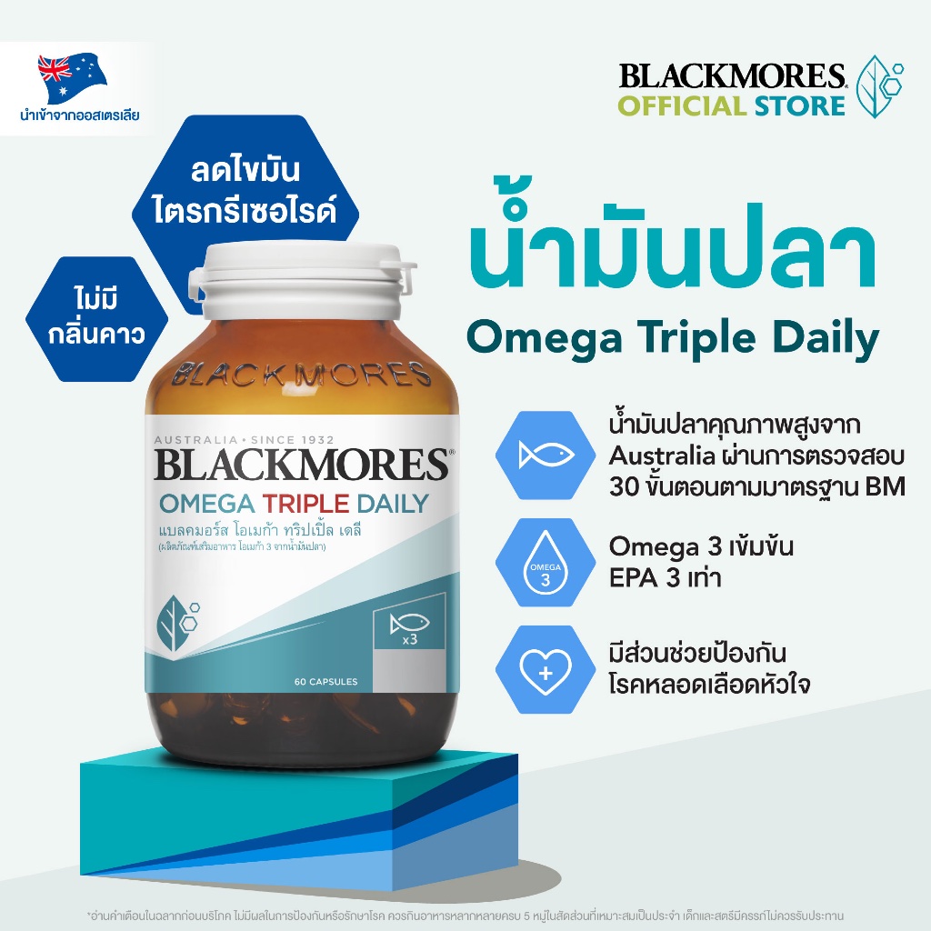 Blackmores Omega Triple Daily (60 caps) แบลคมอร์ส โอเมก้า ทริปเปิ้ล เดลี (60 แคปซูล)