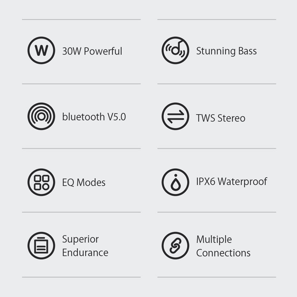 Blitzwolf BW-WA4 30W ลําโพงบลูทูธไร้สาย แบบพกพา ไดรเวอร์คู่ เบส TWS สเตอริโอ IPX6 กันน้ํา สีดํา