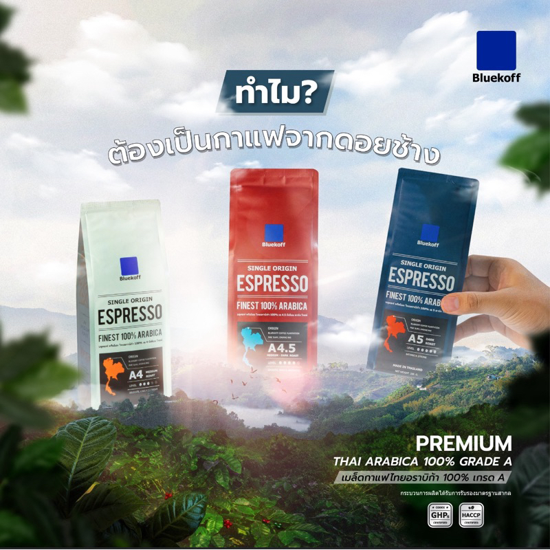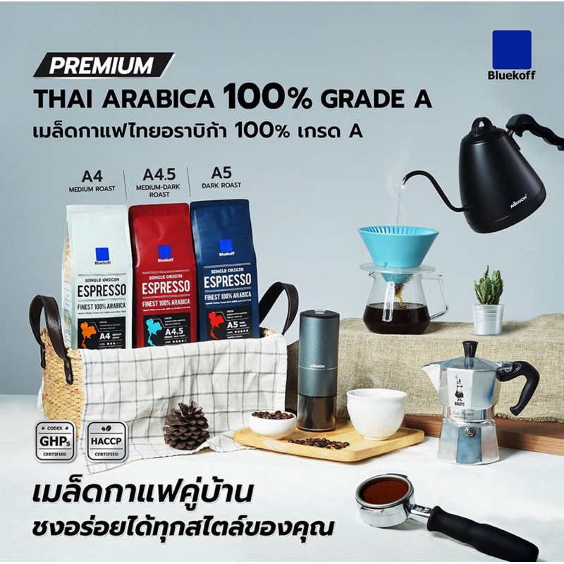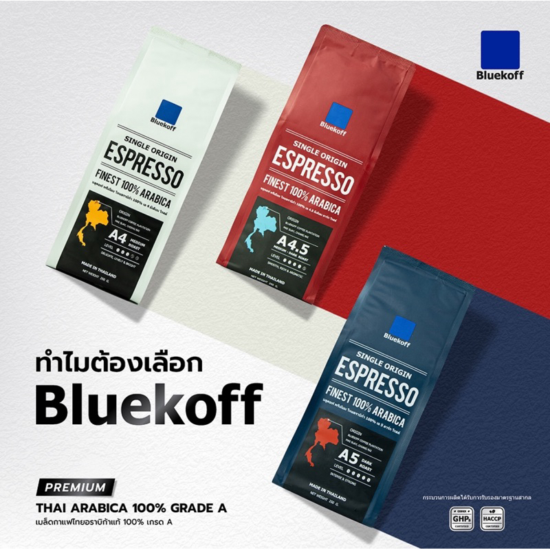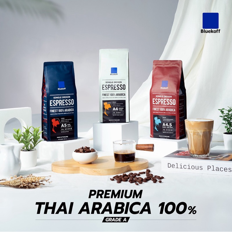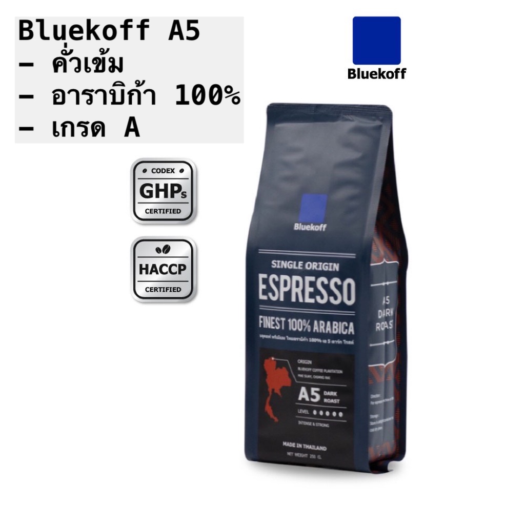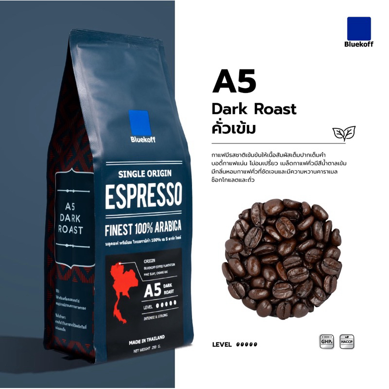 Bluekoff A5 เมล็ดกาแฟ ไทยอาราบิก้า คั่วเข้ม (Dark Roast) 250 กรัม
