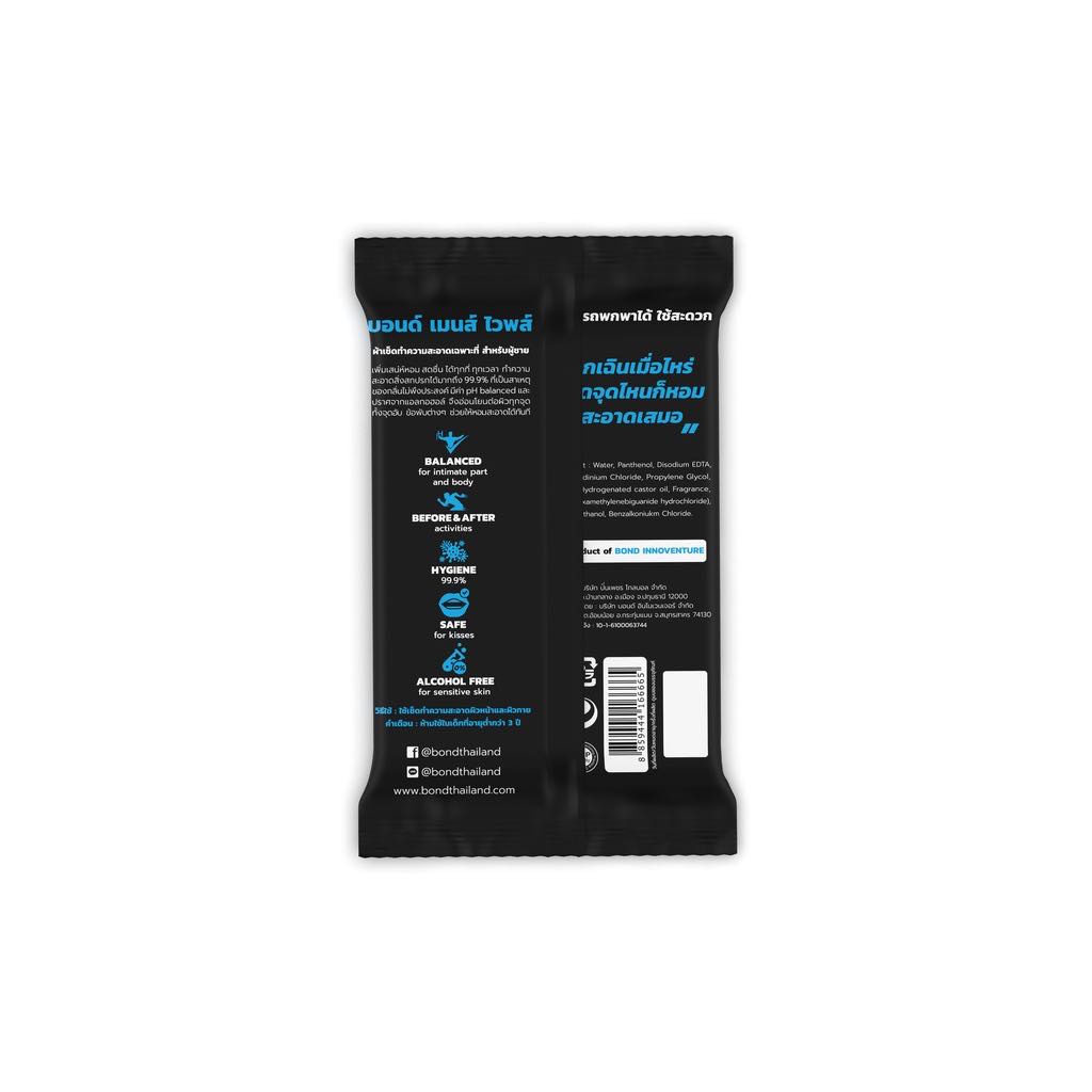 Bond Men's Wipes ( บอนด์ ไวพ้ ผ้าเช็ดน้องชาย ฉุกเฉิน ) ทําความสะอาด ที่จุดซ่อนเร้น ผ้าเช็ด 1 ซอง (10แผ่น)