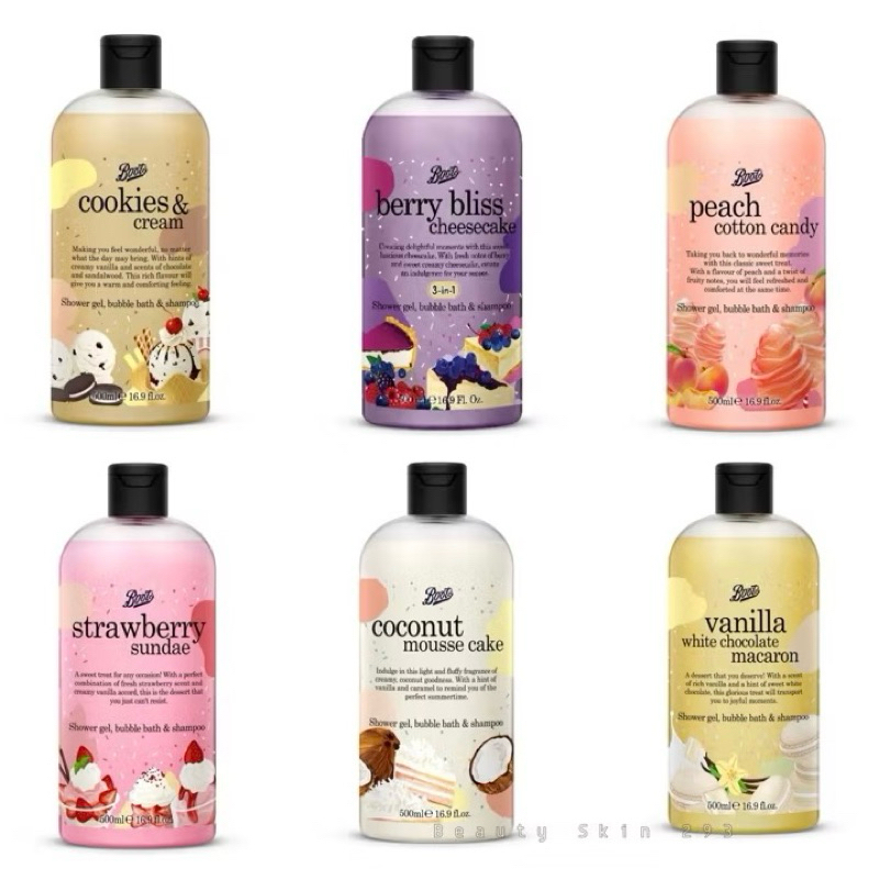 เจลอาบน้ำ&แชมพู Boots Shower Gel, Bubble Bath & Shampoo 500ML Flavour Collection