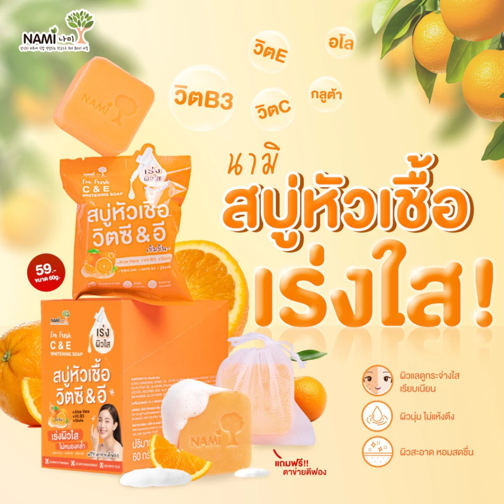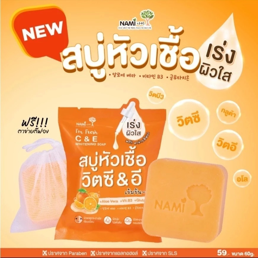 (กล่อง 4 ก้อน) Nami I'm Fresh C&E Whitening Soap สบู่หัวเชื้อ นามิ (ปริมาณ 60 กรัม)