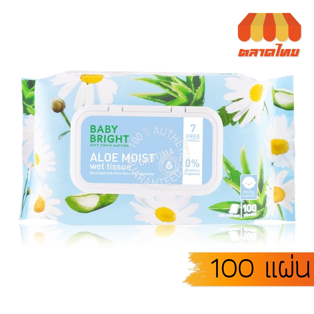ทิชชู่เปียก อโลมอยส์เว็ททิชชู่ เบบี้ ไบร์ท 100 แผ่น Baby Bright Aloe moist Wet Tissue 100 Sheets