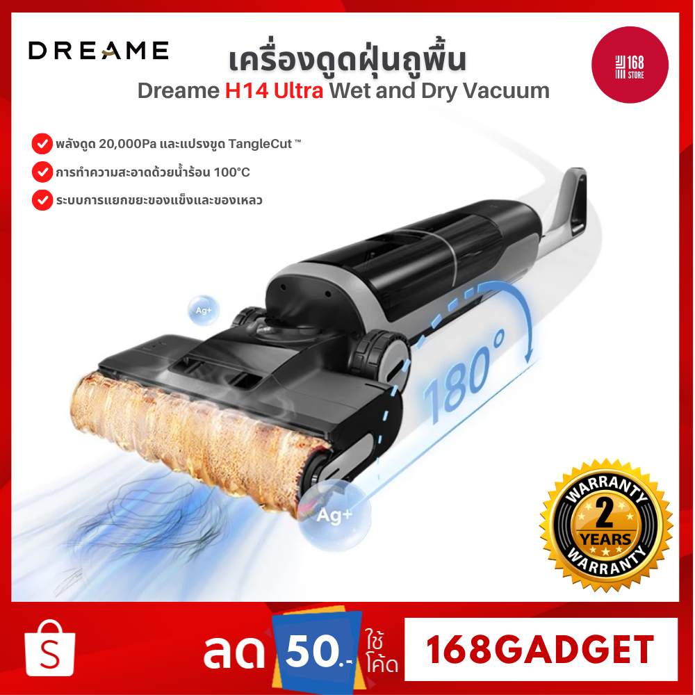 Dreame H14 Ultra Wet and Dry Vacuum เครื่องดูดฝุ่นถูพื้น เส้นผมพันกันเป็น0ล้างด้วยน้ำร้อน100℃ แห้งไว5นาที