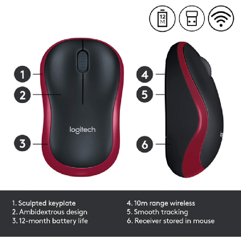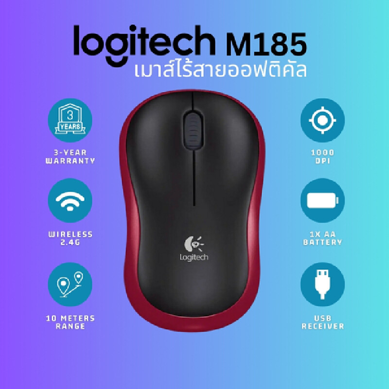 LOGITECH เมาส์ไร้สายออฟติคัล รุ่น M185 สีแดง