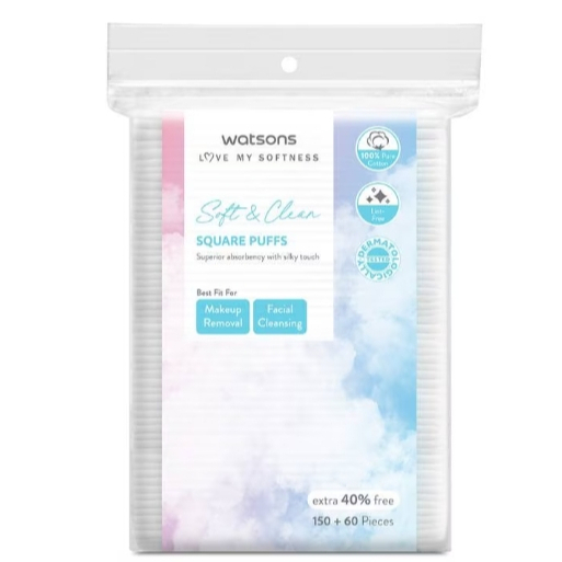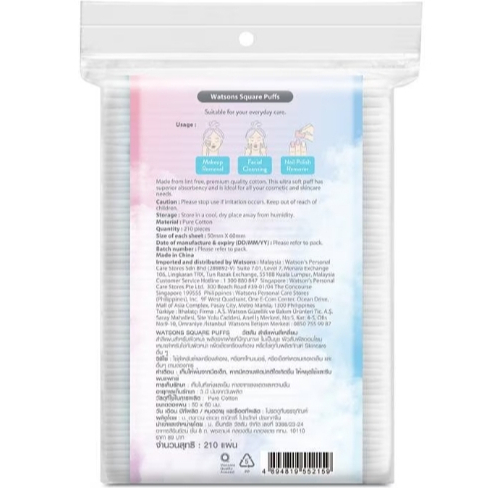 ส่งด่วน🌸 WATSONS สำลีแผ่น เช็ดหน้า วัตสัน ทรงสี่เหลี่ยม 210 แผ่น / สำลีกลม 40 ก้อน สำลีวัตสัน