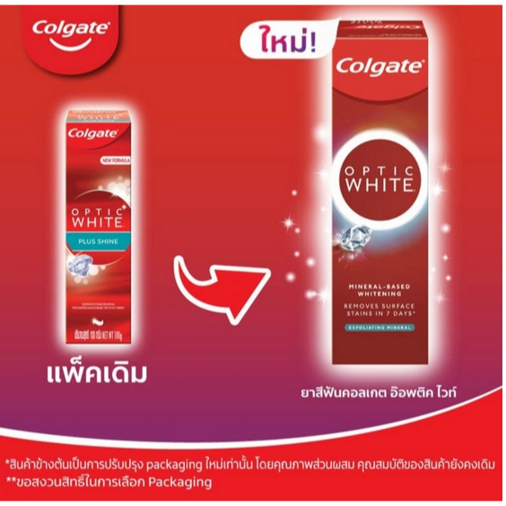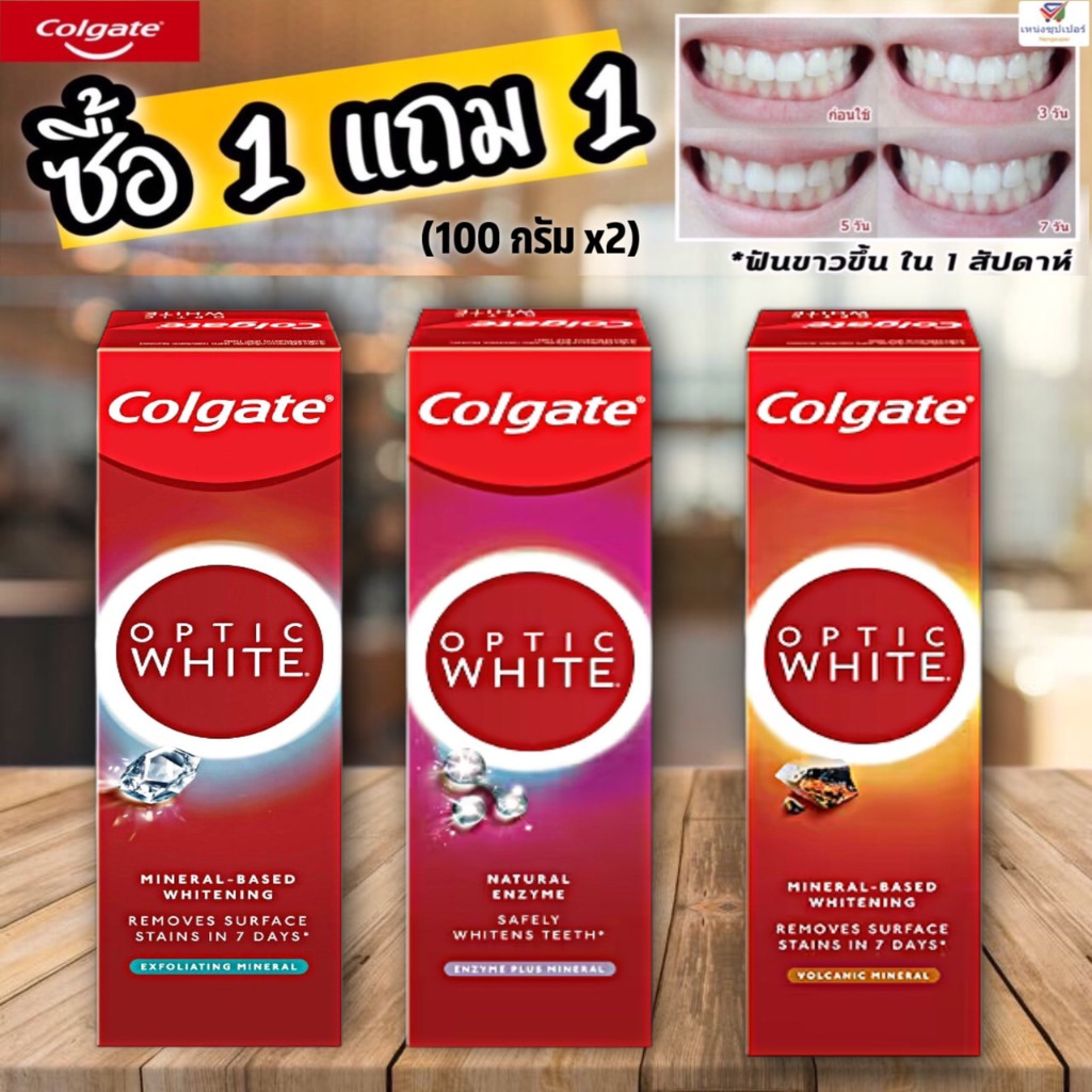 (ซื้อ 1แถม1) ยาสีฟัน คอลเกต อ๊อฟติค ไวท์ optic white (ฟันขาวขึ้นใน1สัปดาห์*) 100 กรัม มี 3 สูตรให้เลือก