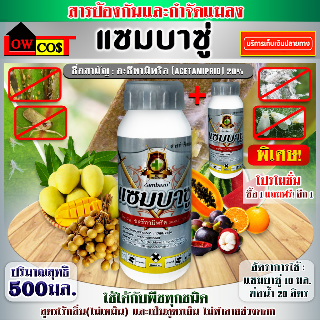ซื้อ1แถม1 แซมบาซู่ อะเซทามิพริด (acetamiprid) เป็นสารกำจัด เพลี้ยไฟ เพลี้ยแป้ง เพลี้ยปุยฝ้าย เพลี้ยไก่แจ้และแมลงหวี่ขาว