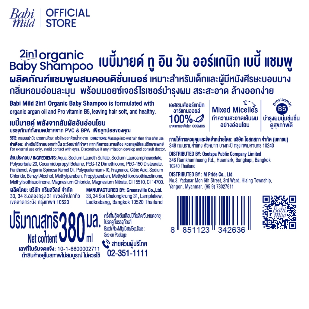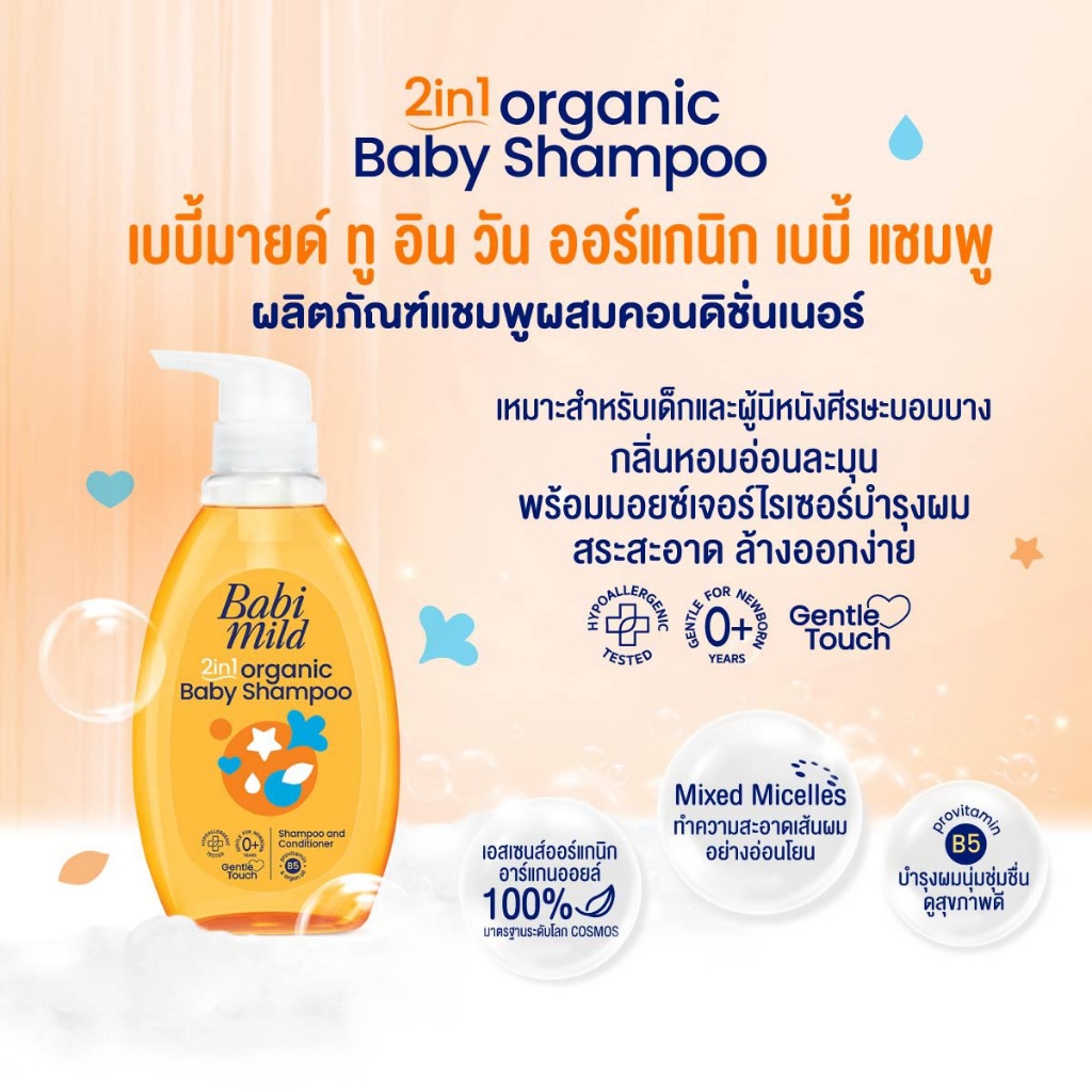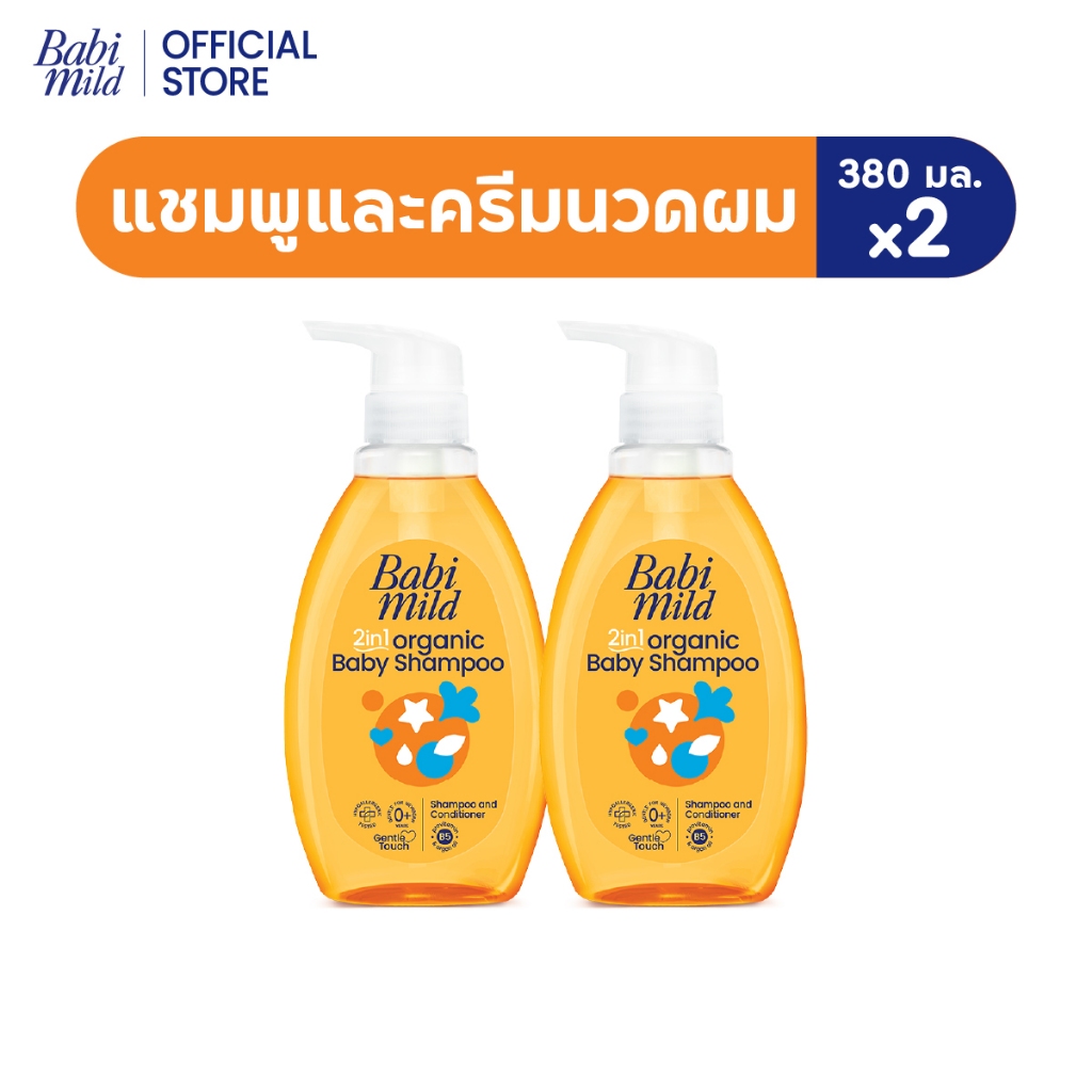 เบบี้มายด์ ออร์แกนิก 2in1 เบบี้ แชมพูและครีมนวดผม 380มล x2 /Babi Mild 2in1 Baby Shampoo 380 ml x2