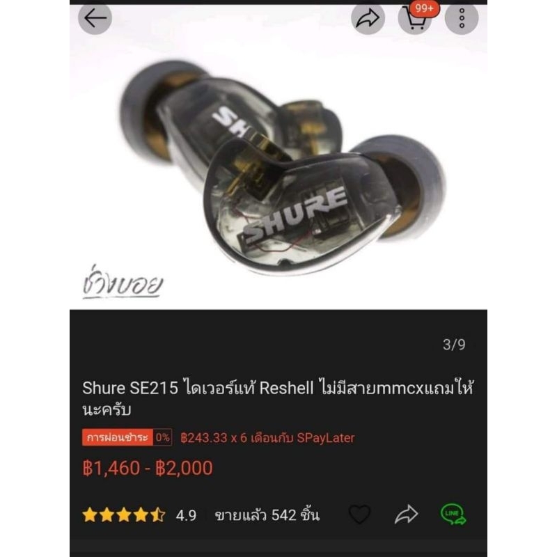 💯เจ้าเก่า Shure se215 reshell ไดเวอร์แท้เปลี่ยนบอดี้ใหม่ เสียงเหมือนออกห้าง100% 🔥ประกัน2ปี🔥 in-ear monitorสำหรับนักดนตรี