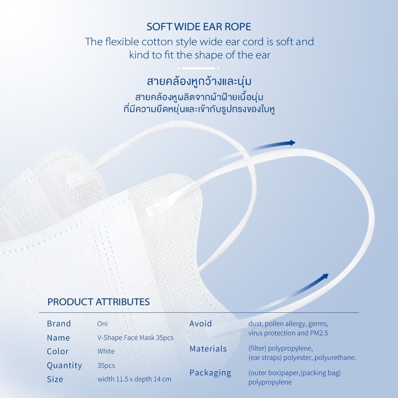 Oni V-Shape Face Mask #White หน้ากากอนามัยโอนิ ทรง V-Shape 35 ชิ้นต่อกล่อง