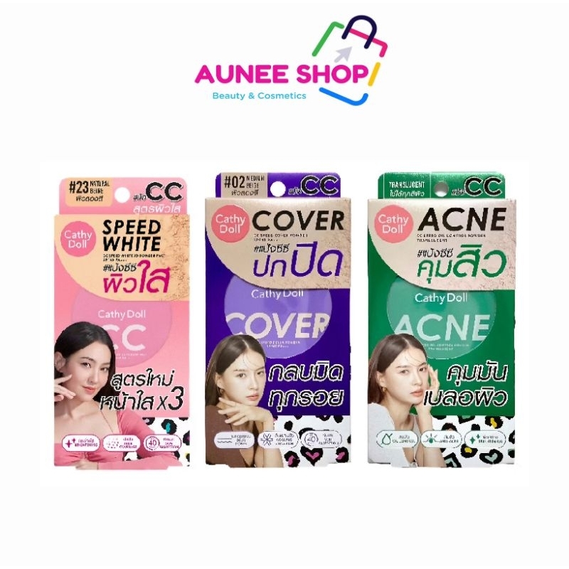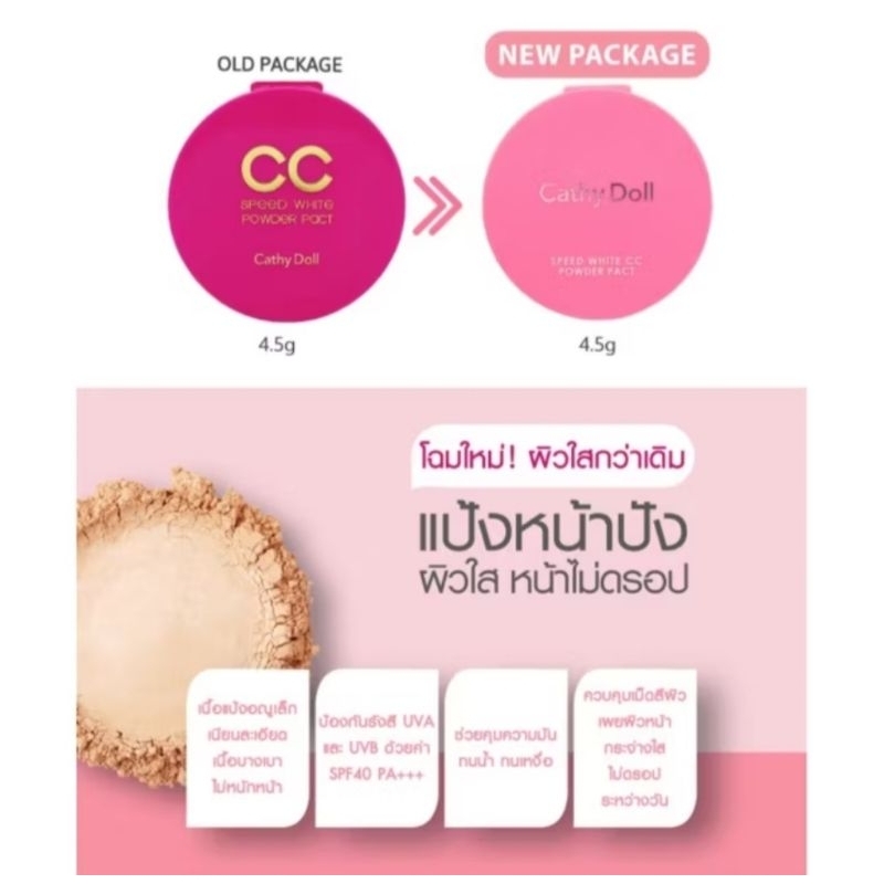 ส่งฟรี/มีไลฟ์ (ตลับ) เคที่ดอลล์ สปีดไวท์ ซีซี พาวเดอร์ แพ็ค 4.5 กรัม SPF40++ Cathy Doll CC Speed White 4.5 g.