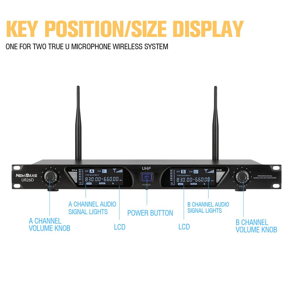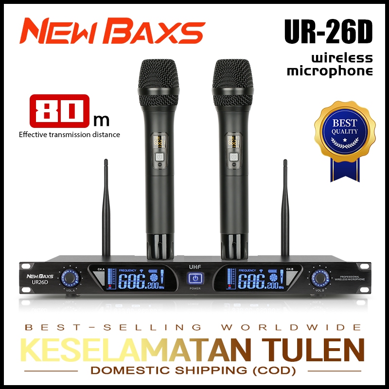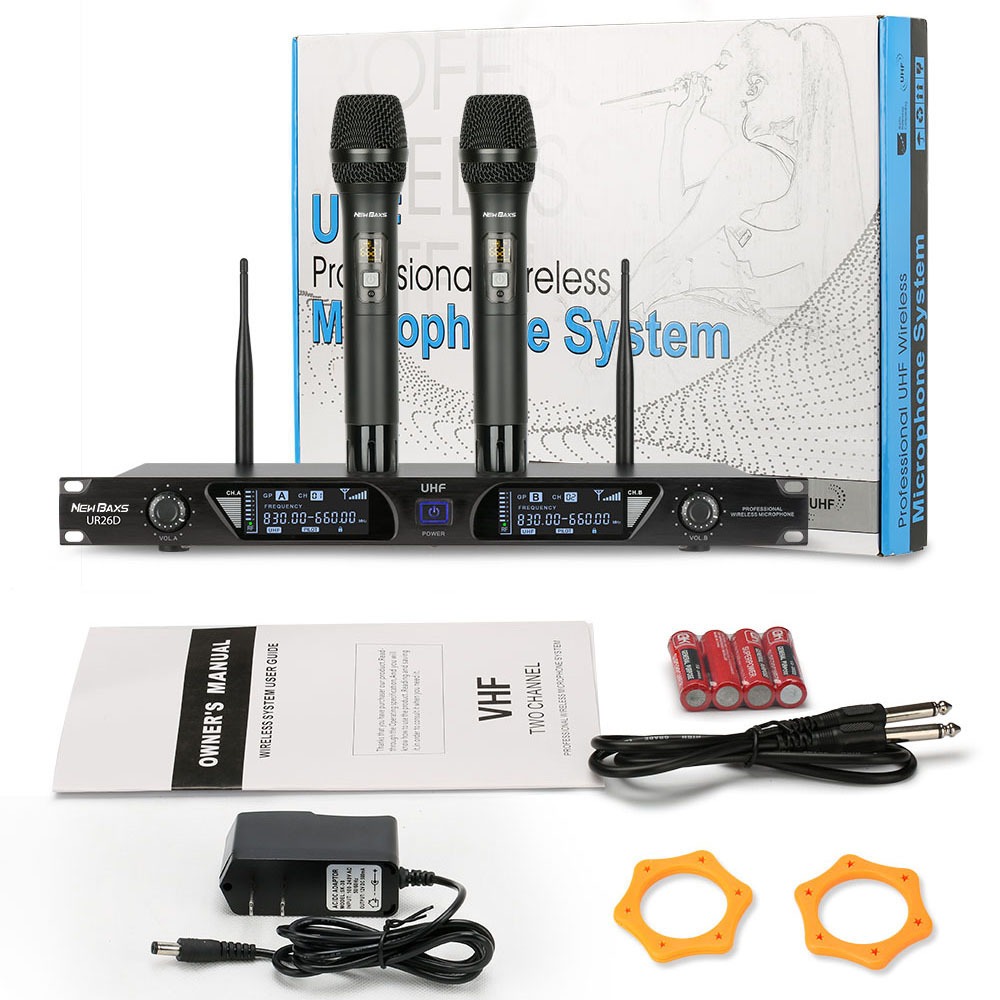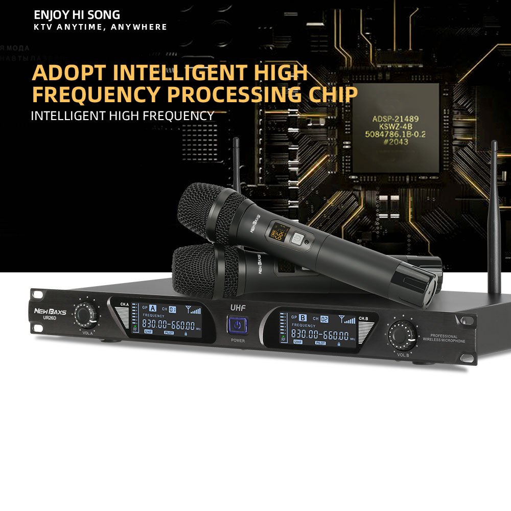 NEW BAXS UR26D wireless microphone for 2 handheld microphones UHF FM 100M distance KTV bar party band performance
